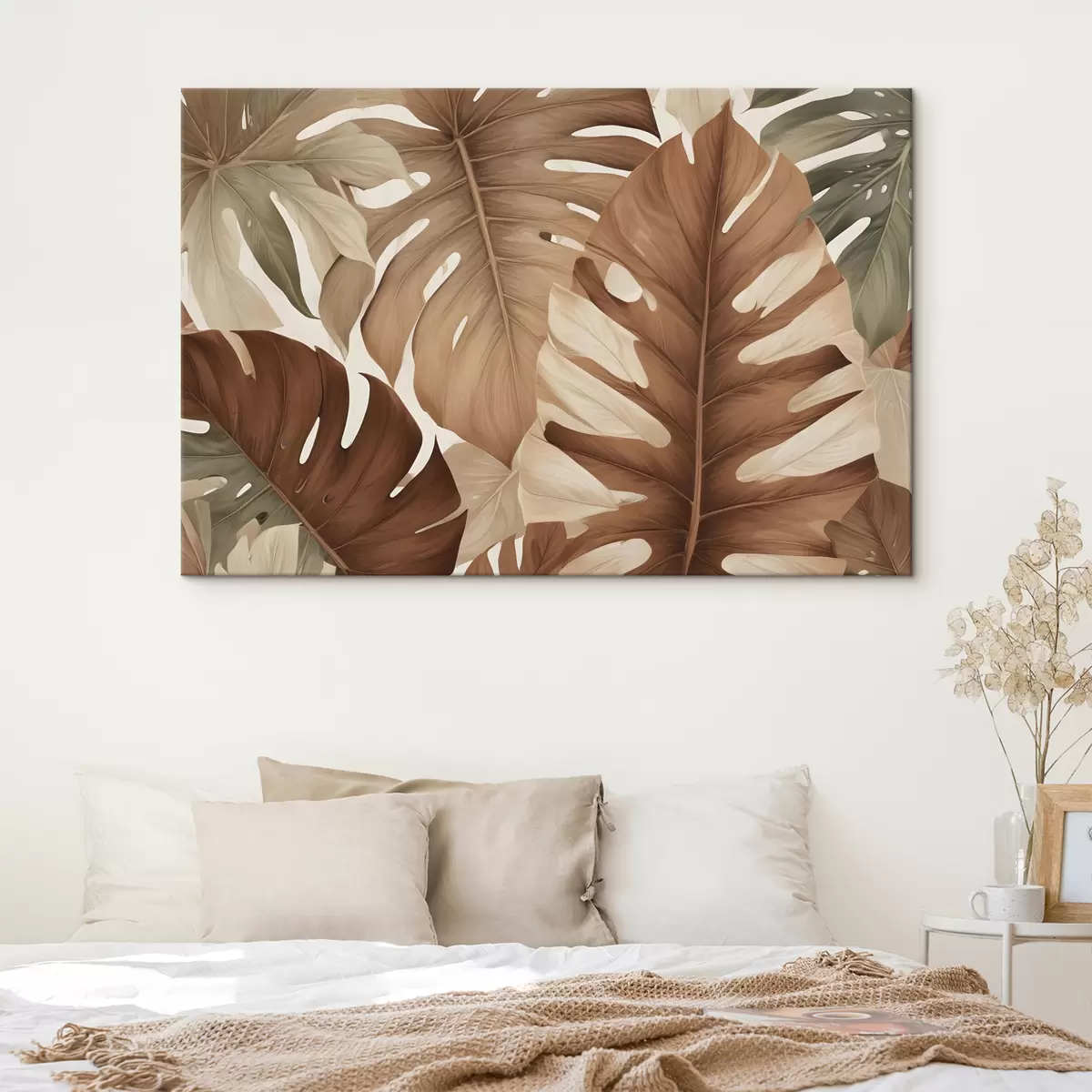 Картина Принт тропічного листя натуральної, органічної текстури у відтінках коричневого та бежевого s40613