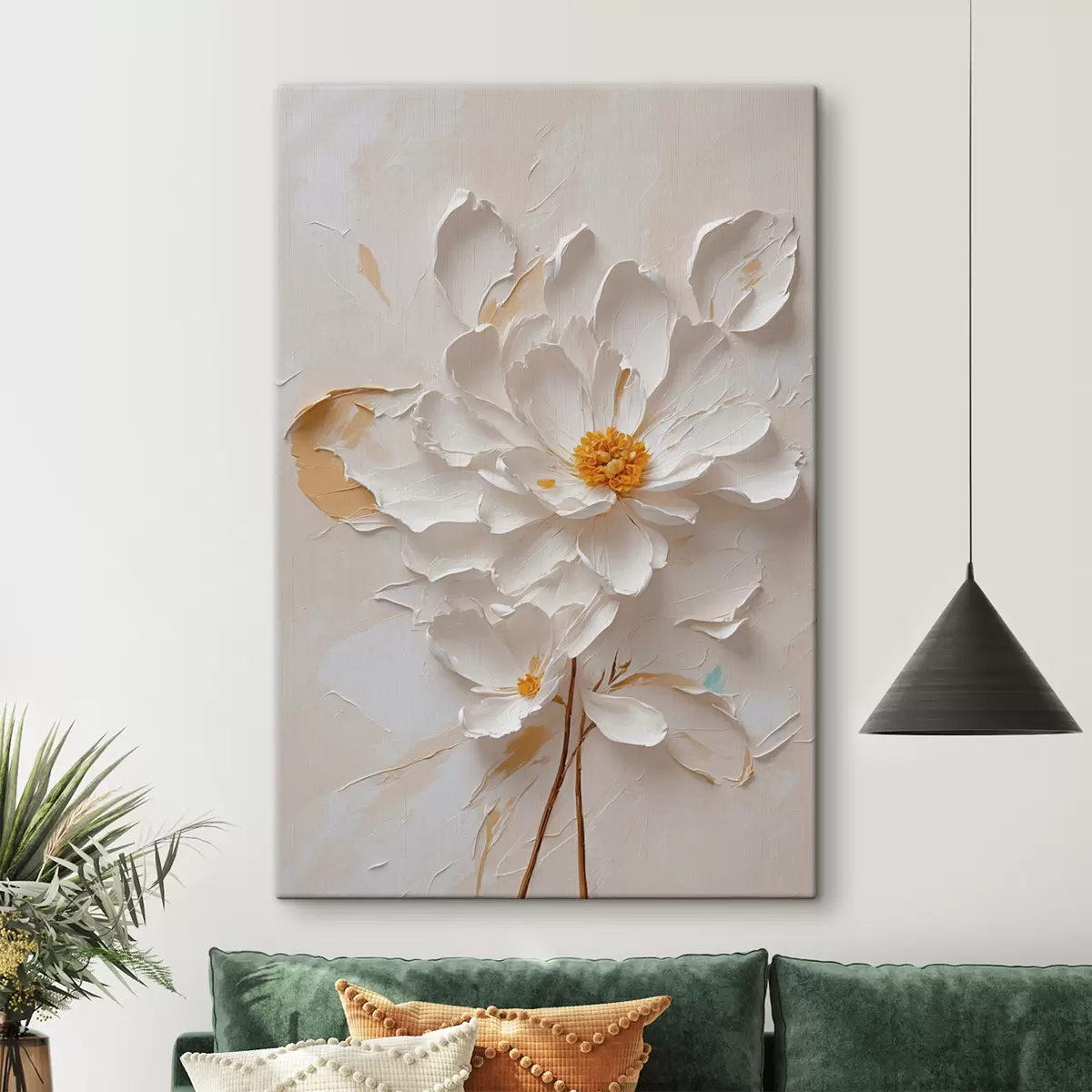Картина Біла квітка в олії з коричневим стеблом Арт. s40619