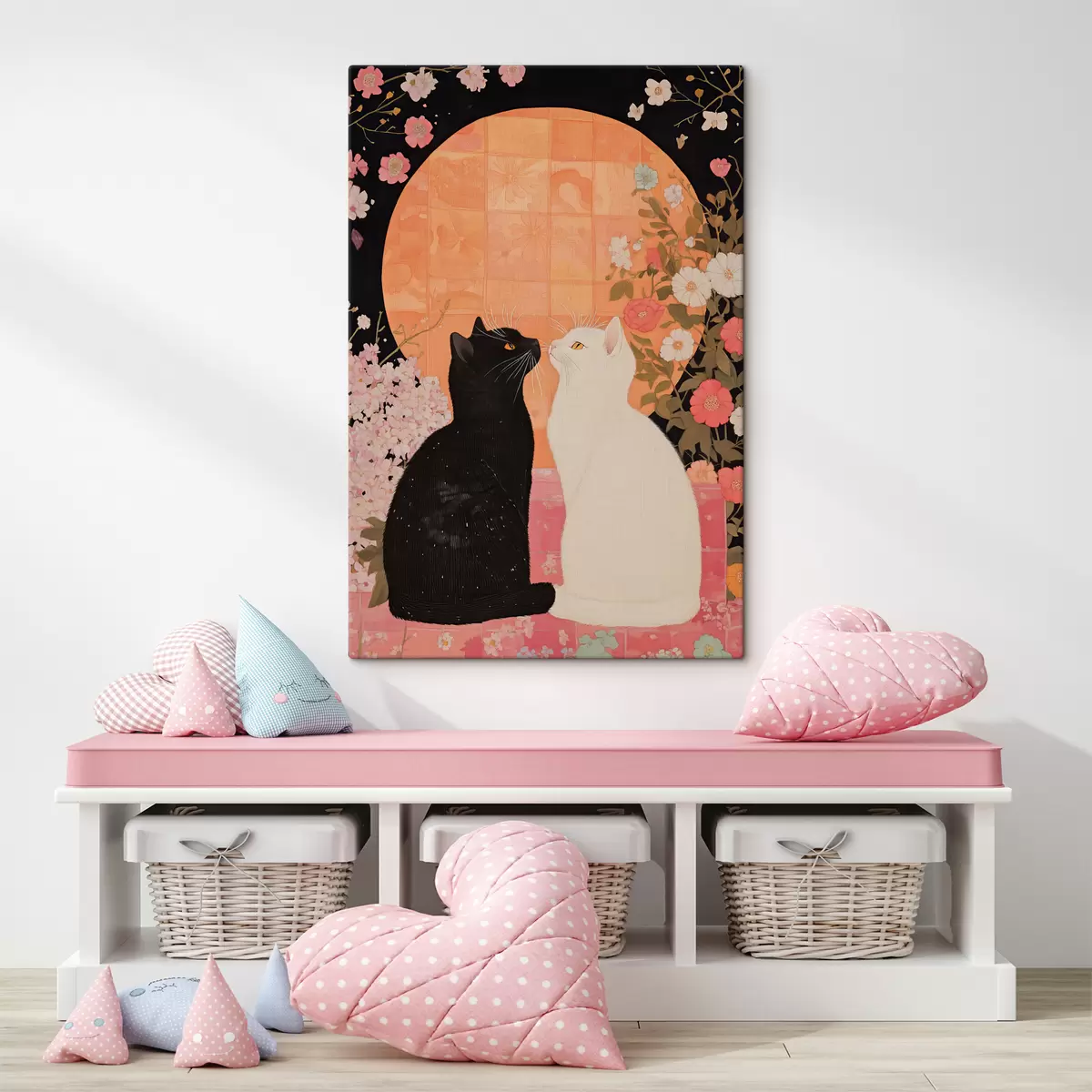 Картина Чорний і білий коти мило дивляться один на одного на заході сонця Арт. s40669