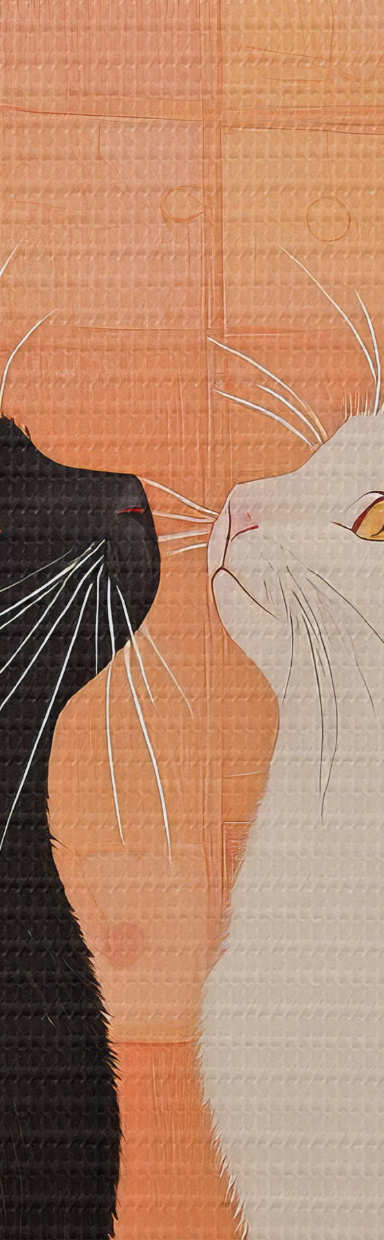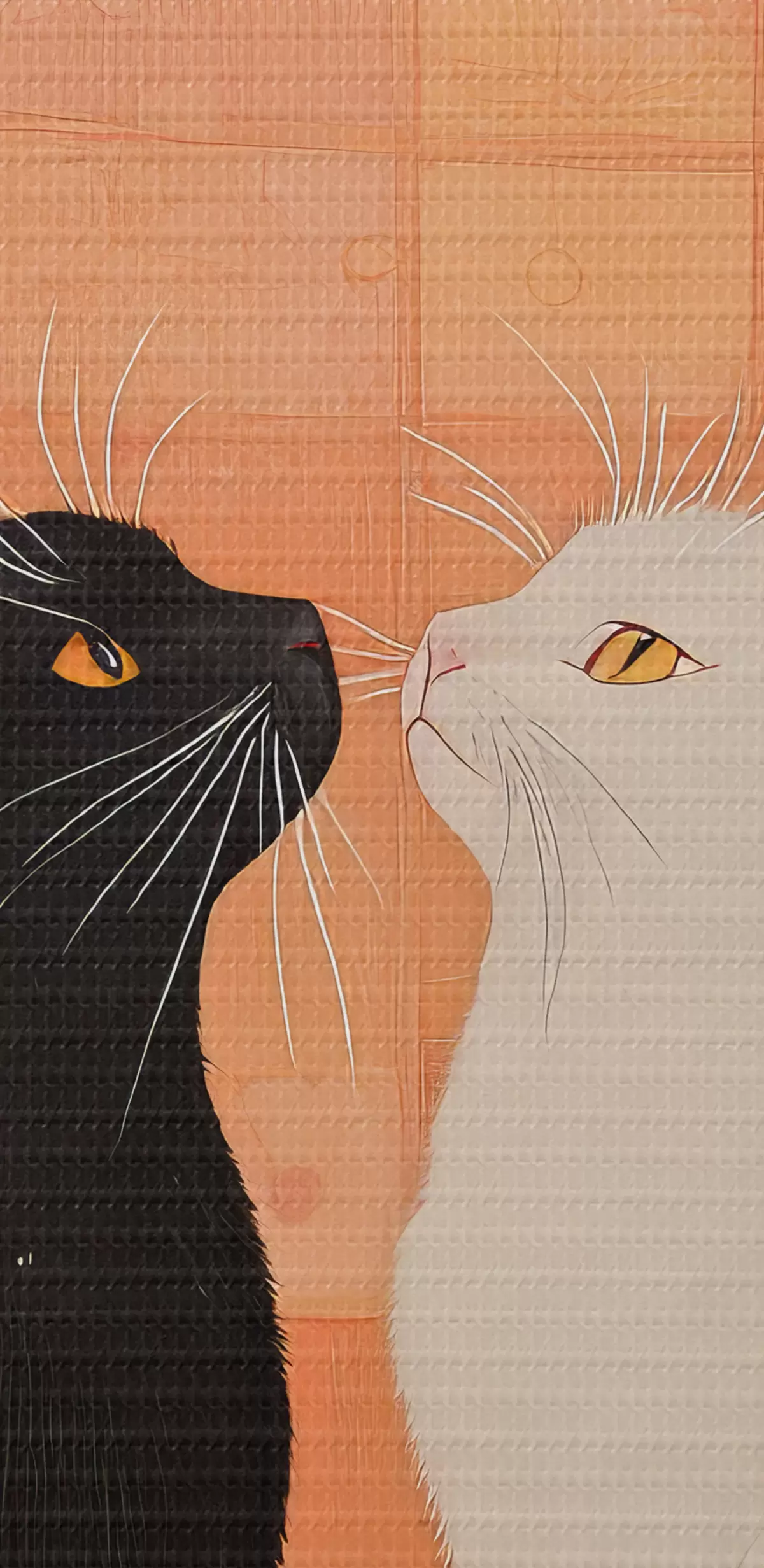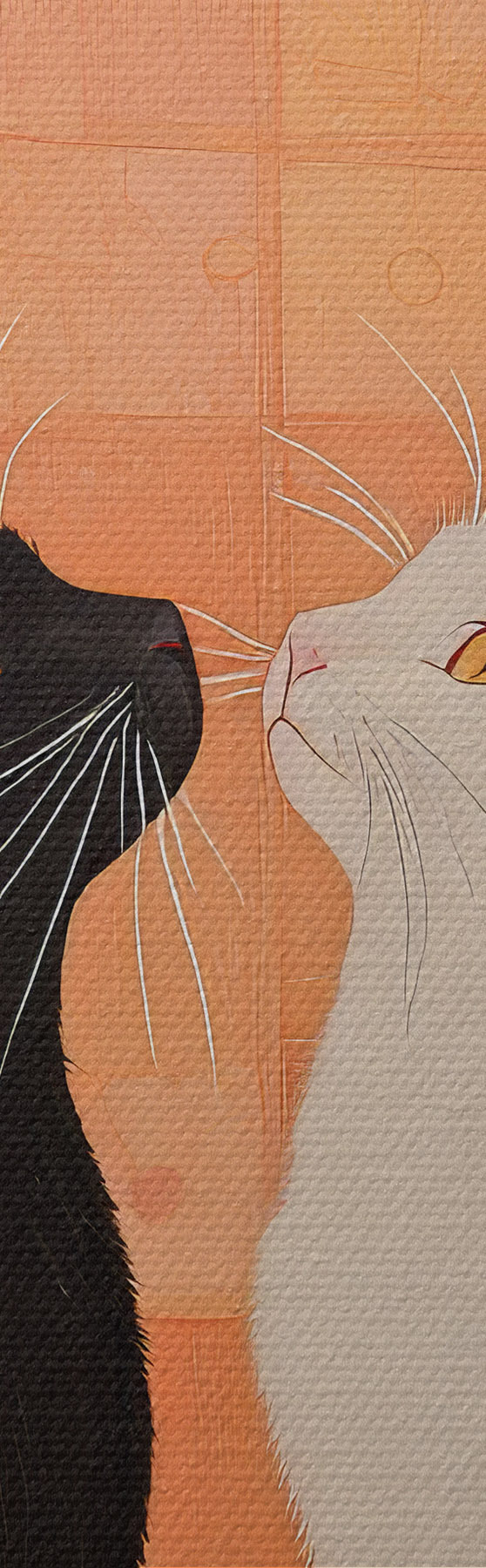 Картина Чорний і білий коти мило дивляться один на одного на заході сонця s40669