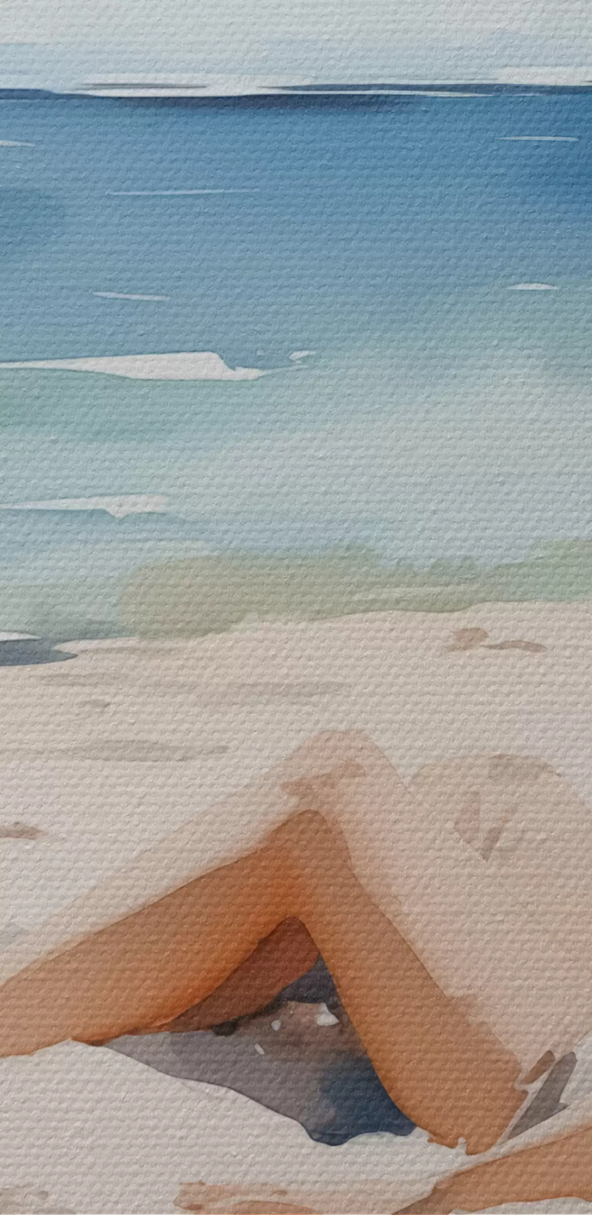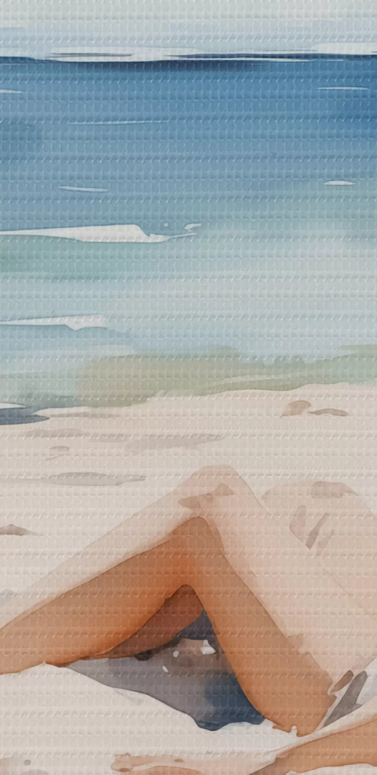 Картина Дівчина відпочиває на пляжі біля моря, акварель s40679