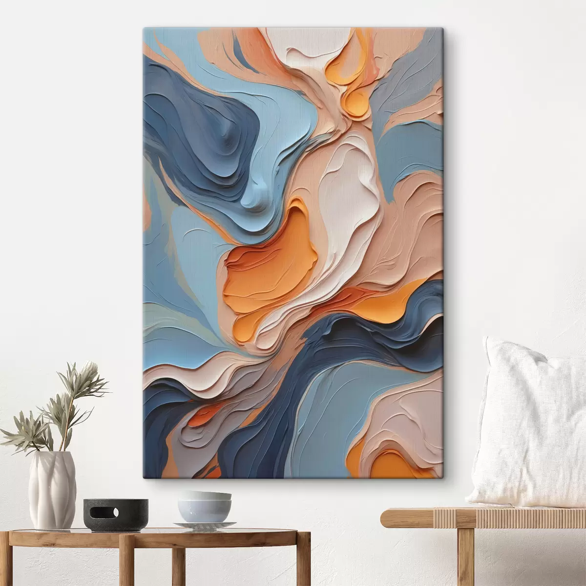 Картина Абстракція в синьо-помаранчевих відтінках з імітацією текстури Арт. s40743