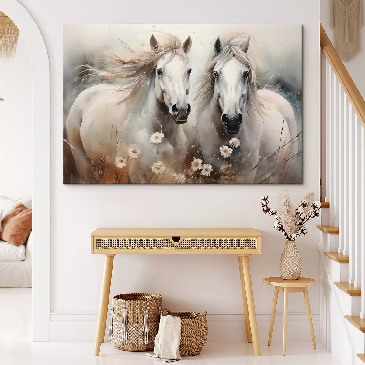 Картина Пара біло-сірих коней біля ромашок Арт. s40749