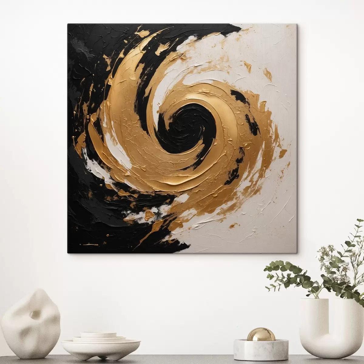 Картина Абстрактний олійний живопис з чорно-жовтим виром Арт. s40864