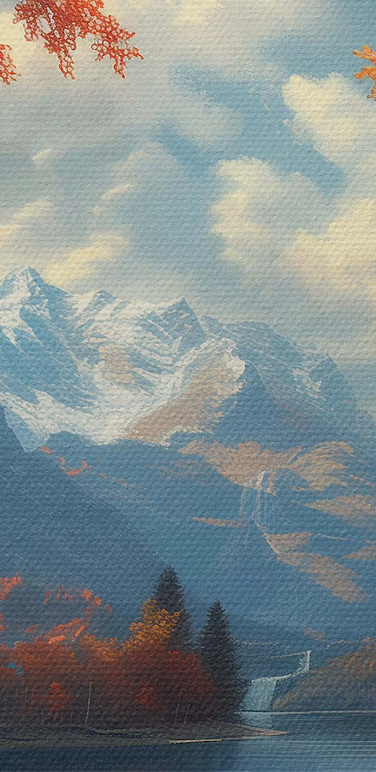 Картина Осінній пейзаж на тлі гір біля ставка Арт. s40903