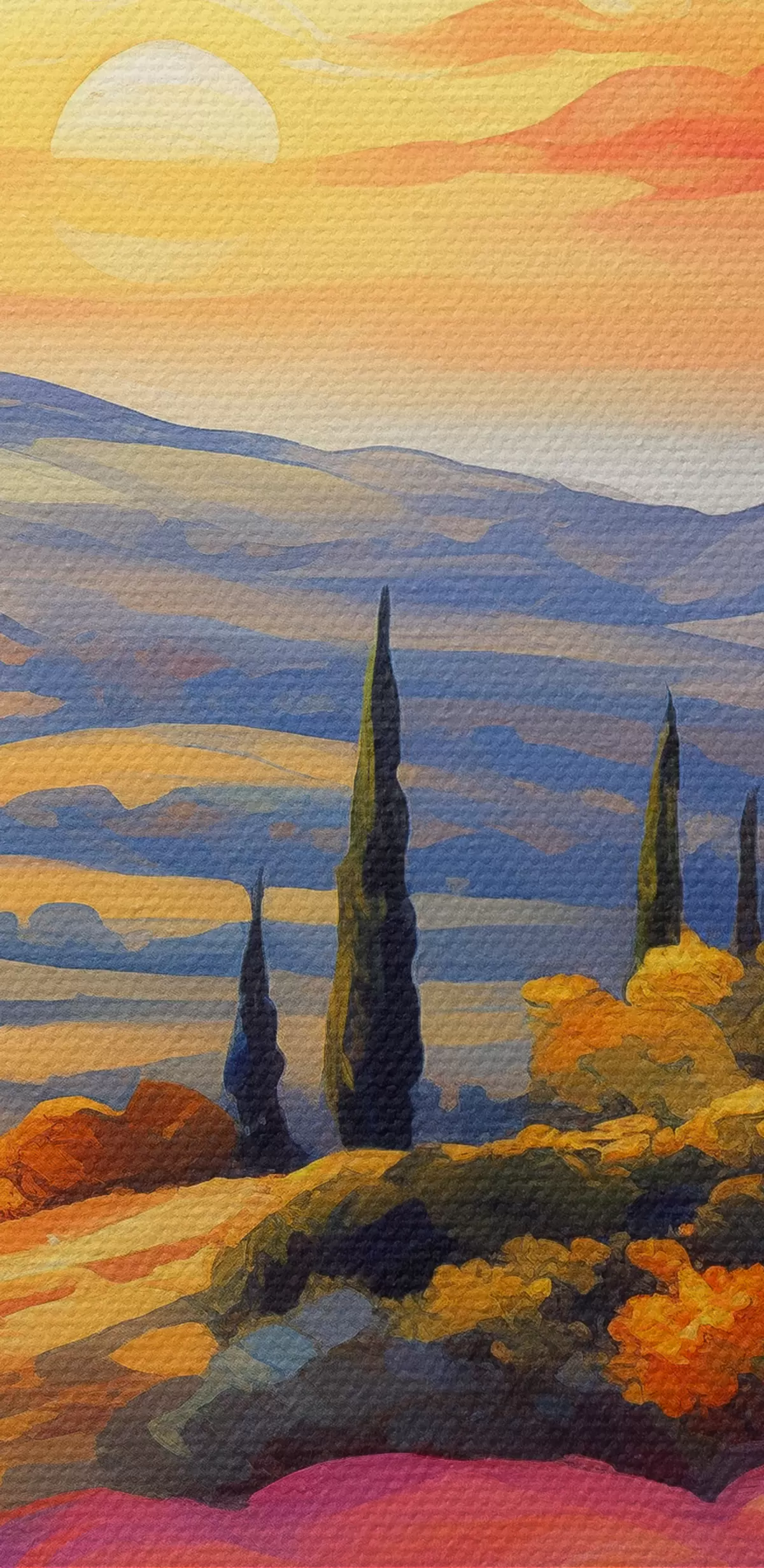 Картина Захід сонця в Тоскані, лавандові поля, красиві пейзажі, акварель Арт. s40942