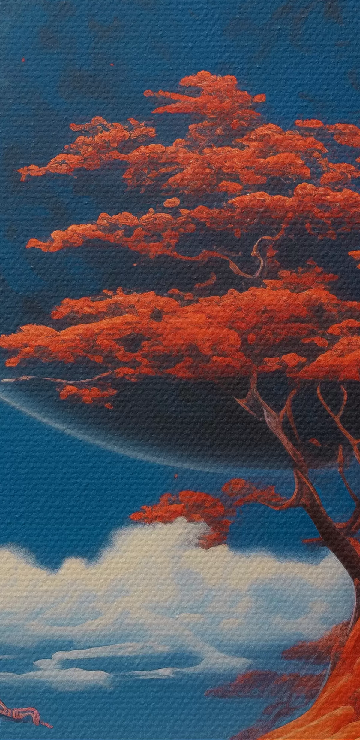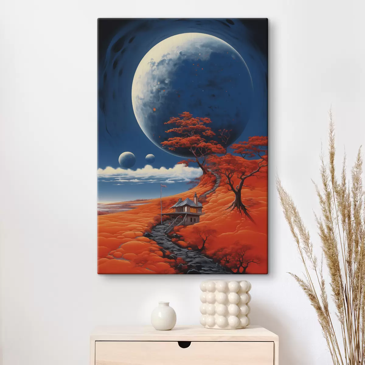 Картина Космічна ілюстрація, планети, блакитне небо, будинок на пагорбі, дерева Арт. s40946