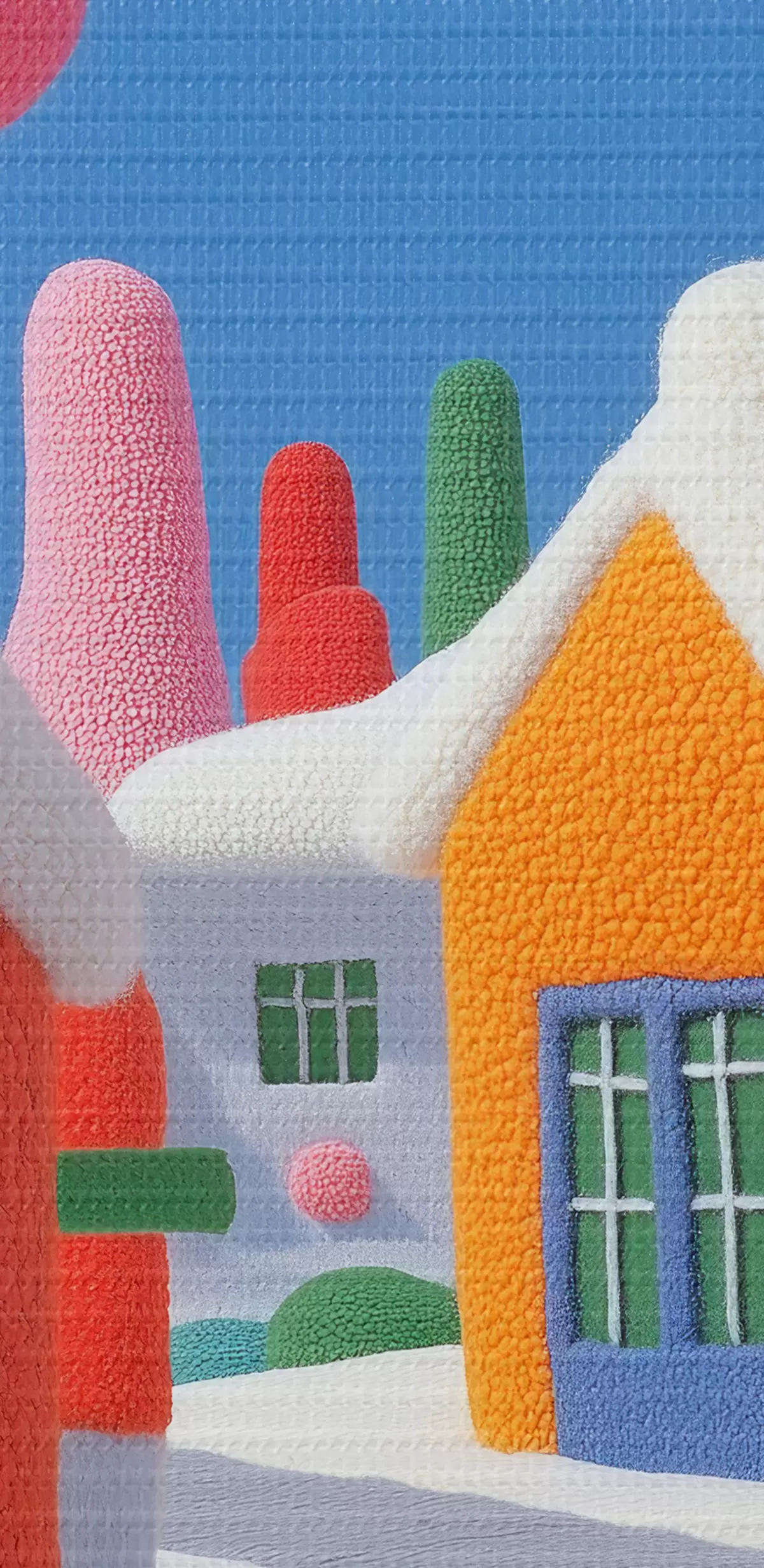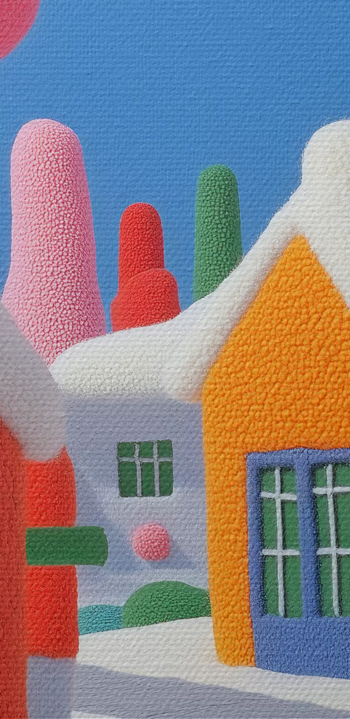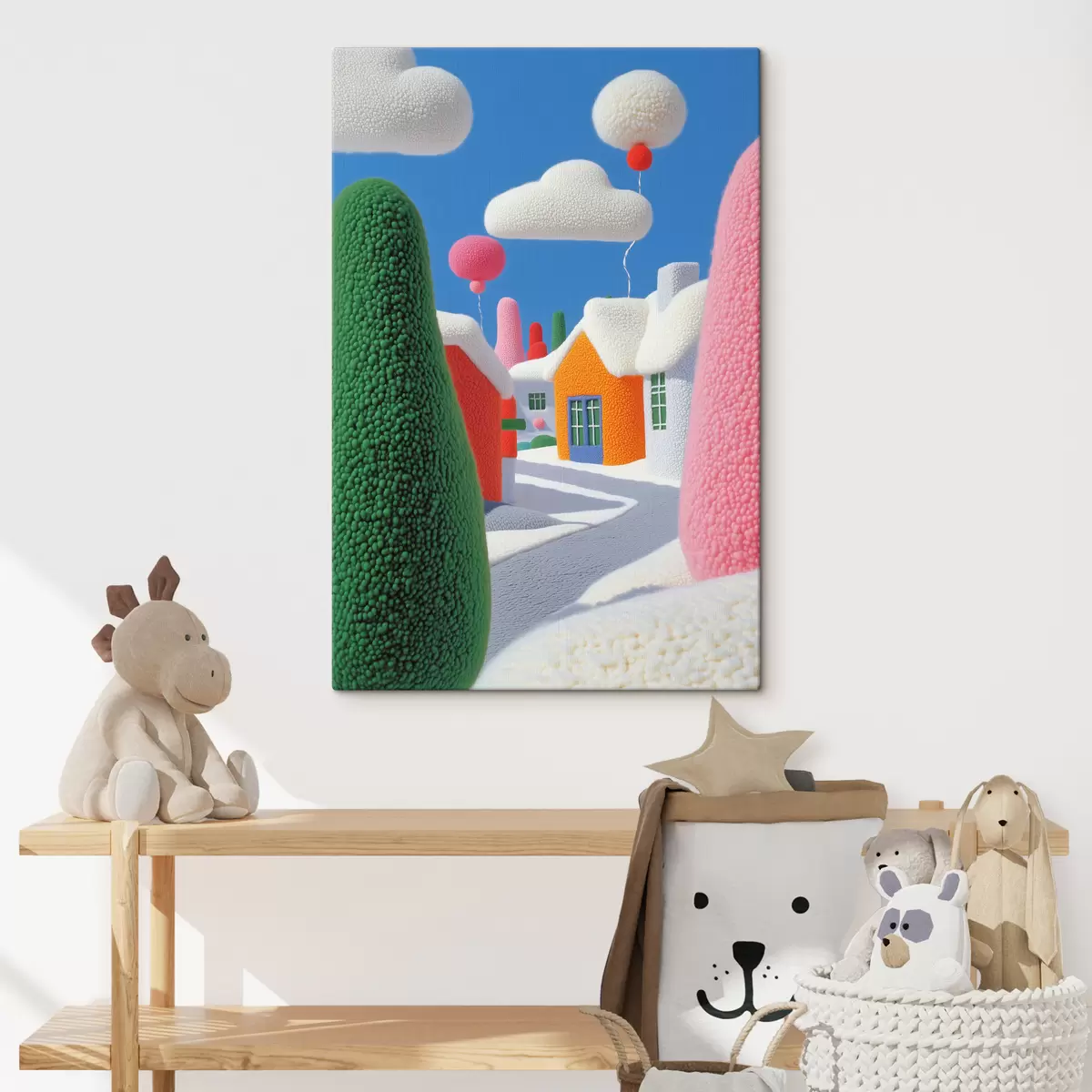 Картина Вулиця з хмарами та фетровими кульками s40970