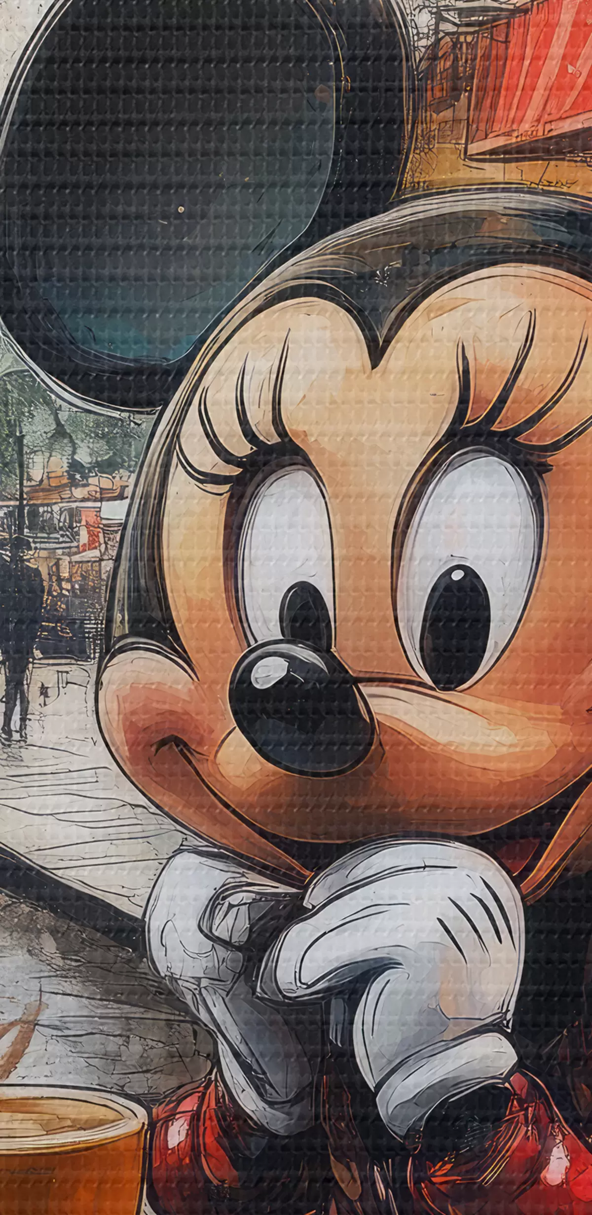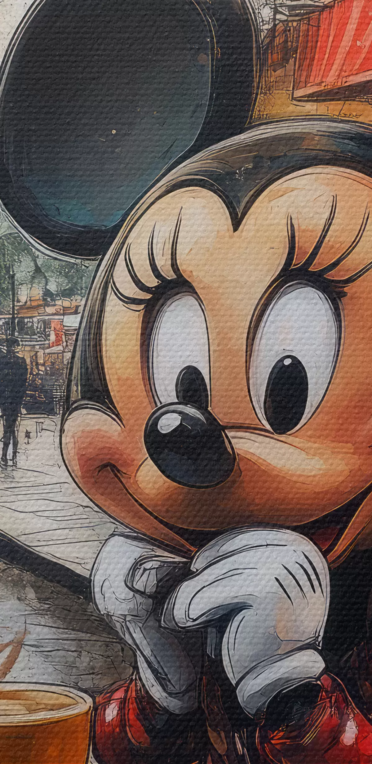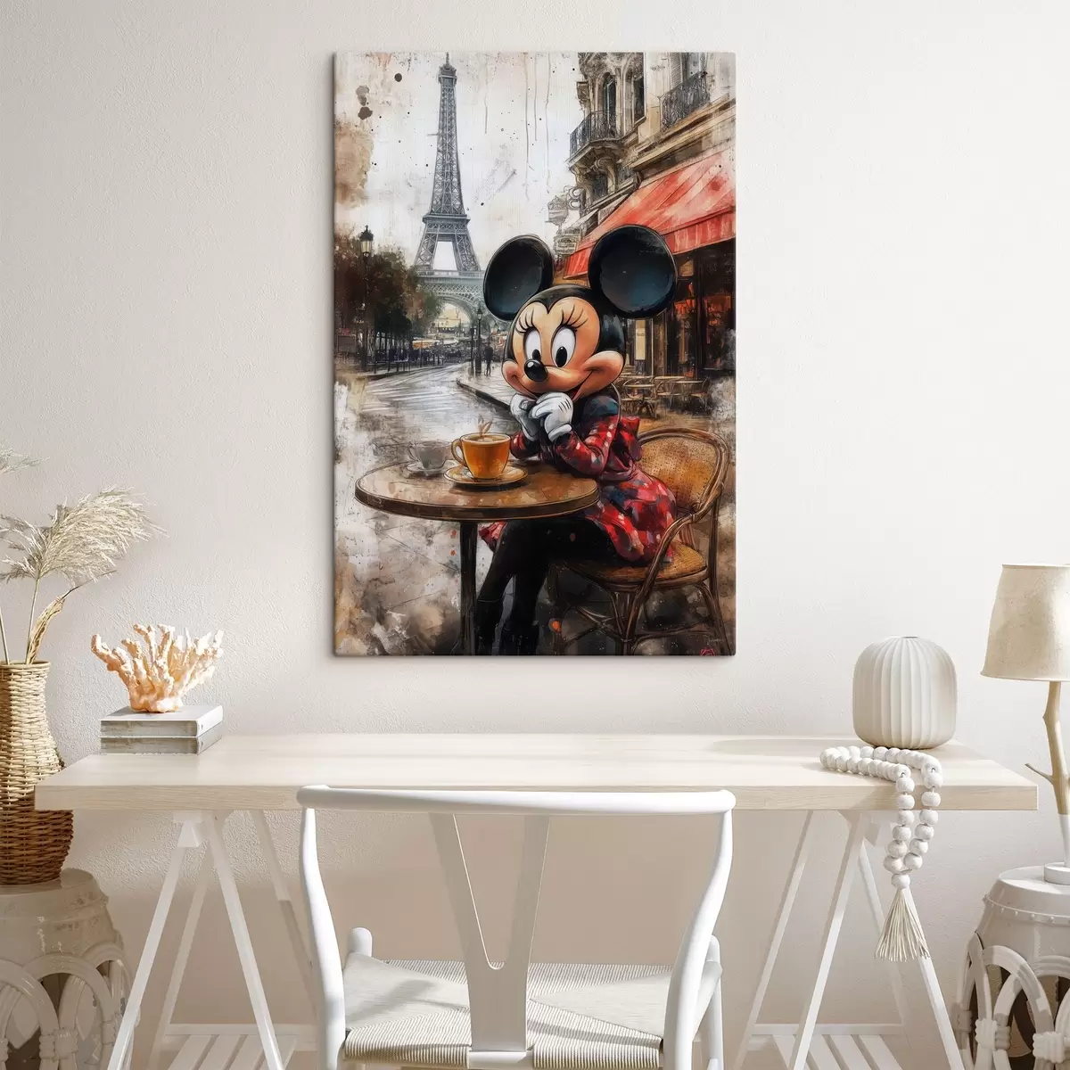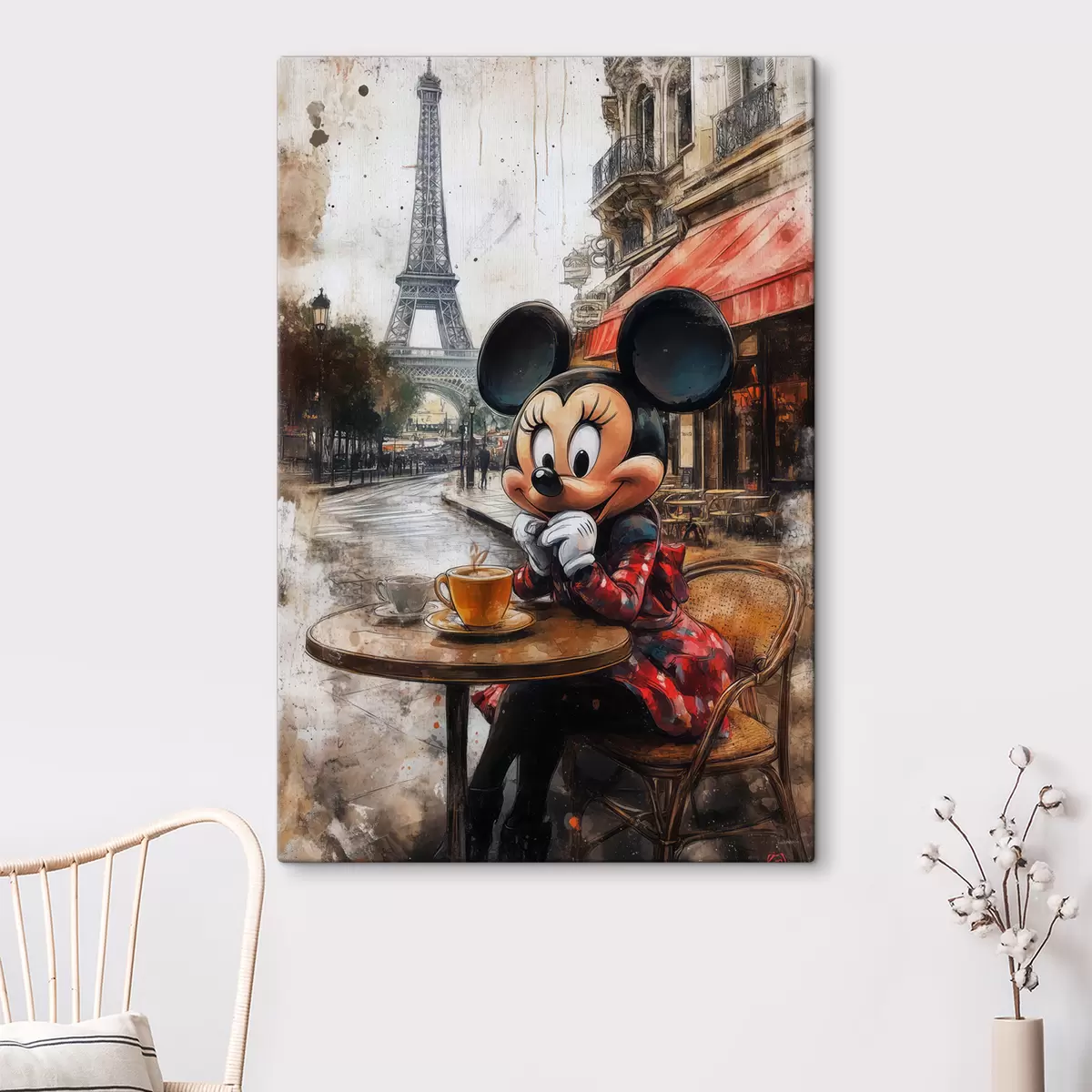Картина Дівчинка з Міккі Маусом п'є каву на тлі Ейфелевої вежі в Парижі Арт. s40972