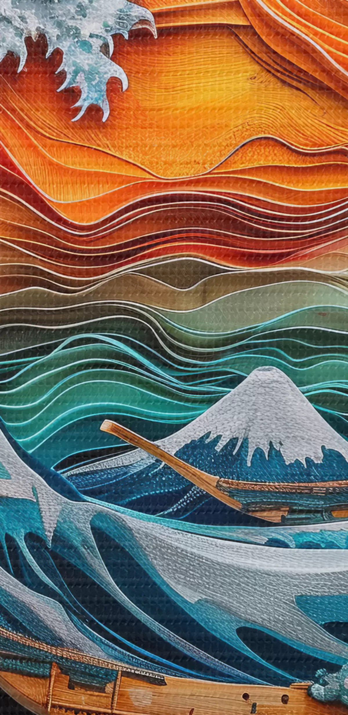 Картина Імітація барельєфу: бурхливий океан з човнами та сонцем s40976