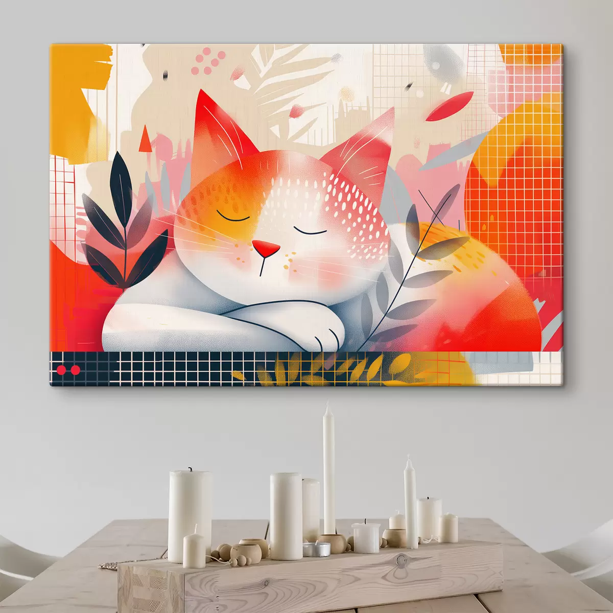 Картина Милий кіт спить на підлозі серед різнокольорових квітів Арт. s40981
