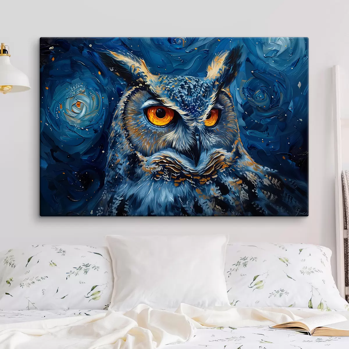 Картина Нічний погляд сови на тлі неба у стилі Ван Гога Арт. s40982