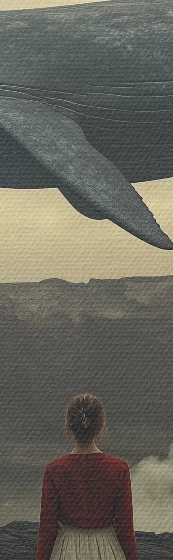Картина Дівчина на лаві з великим летючим китом у небі s40986
