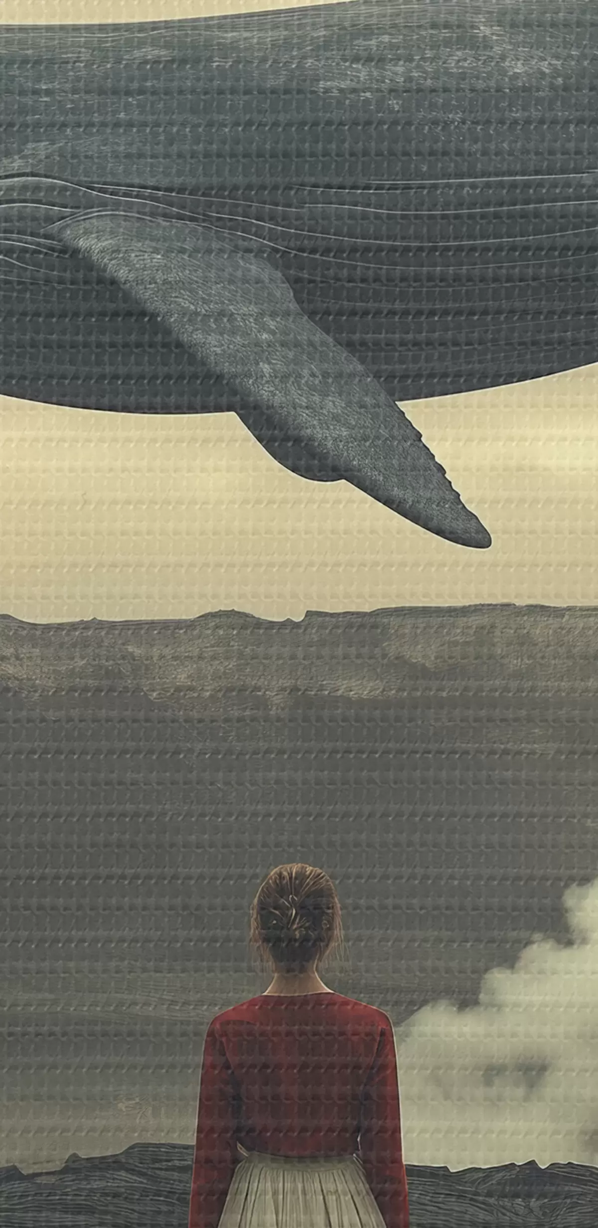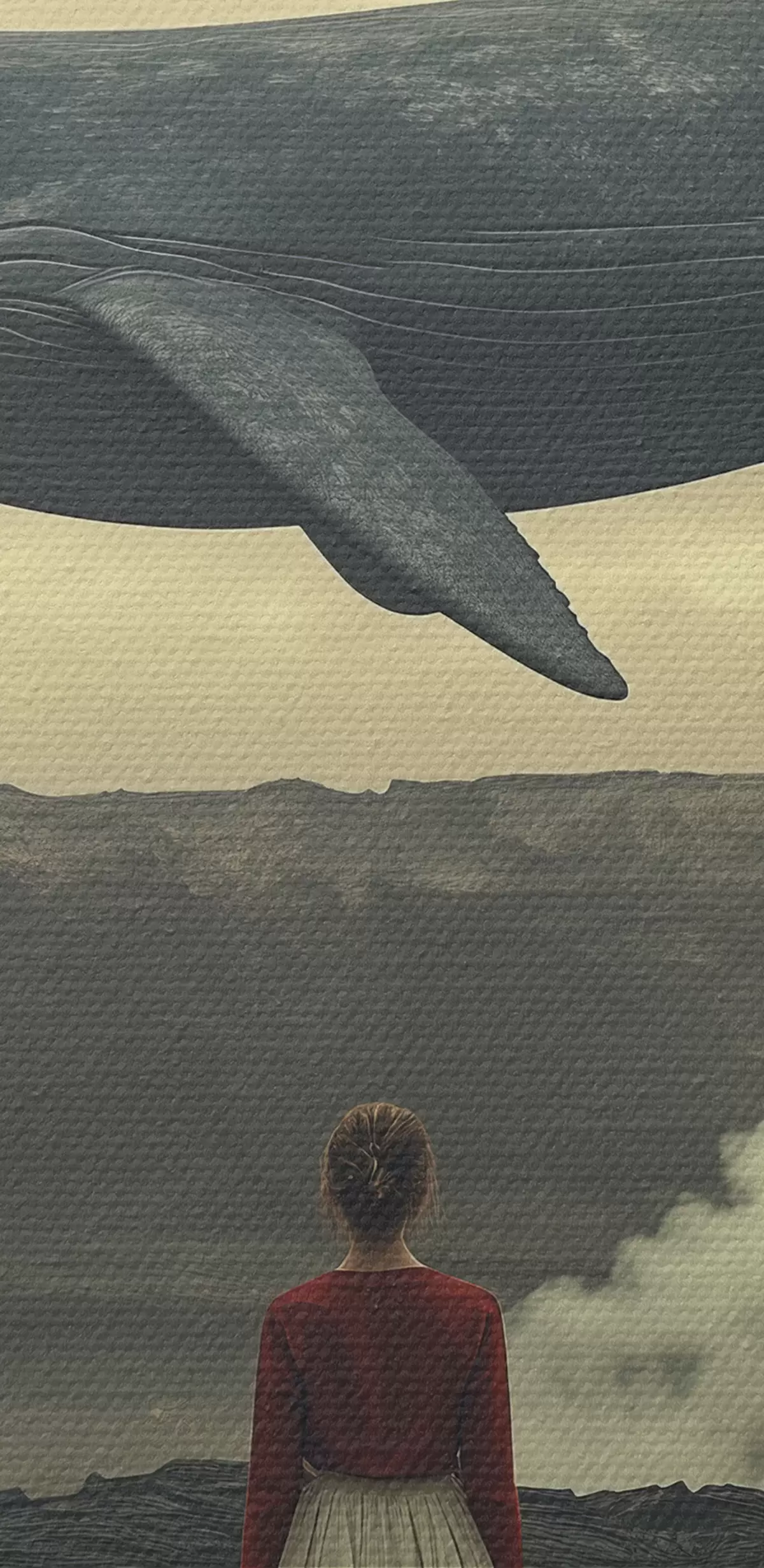 Картина Дівчина на лаві з великим летючим китом у небі Арт. s40986