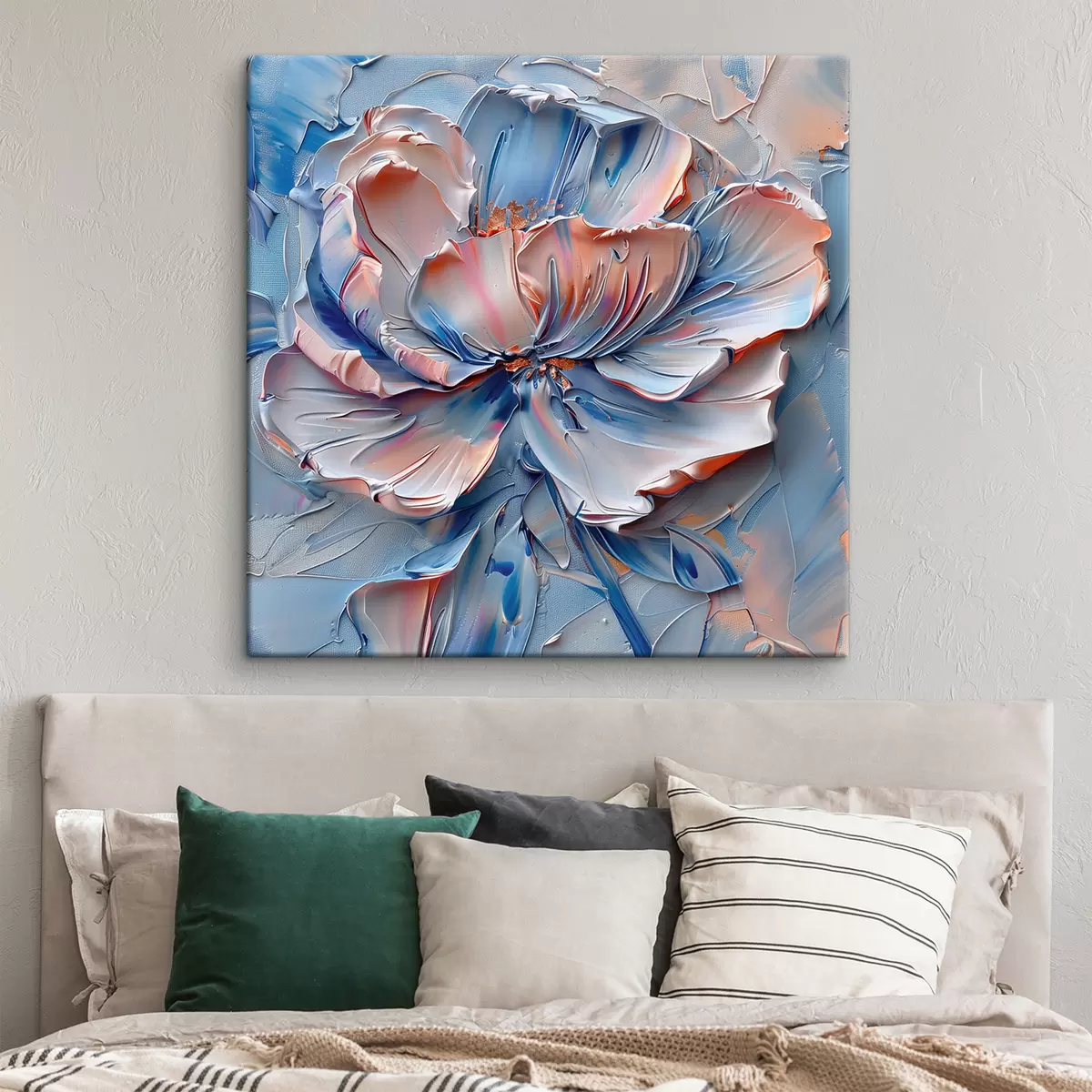 Картина Велика квітка зі сміливими мазками синього та персикового кольорів s41004