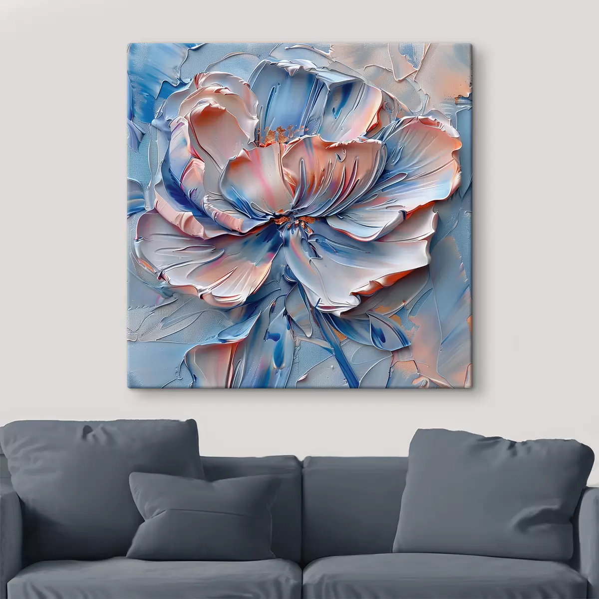 Картина Велика квітка зі сміливими мазками синього та персикового кольорів Арт. s41004