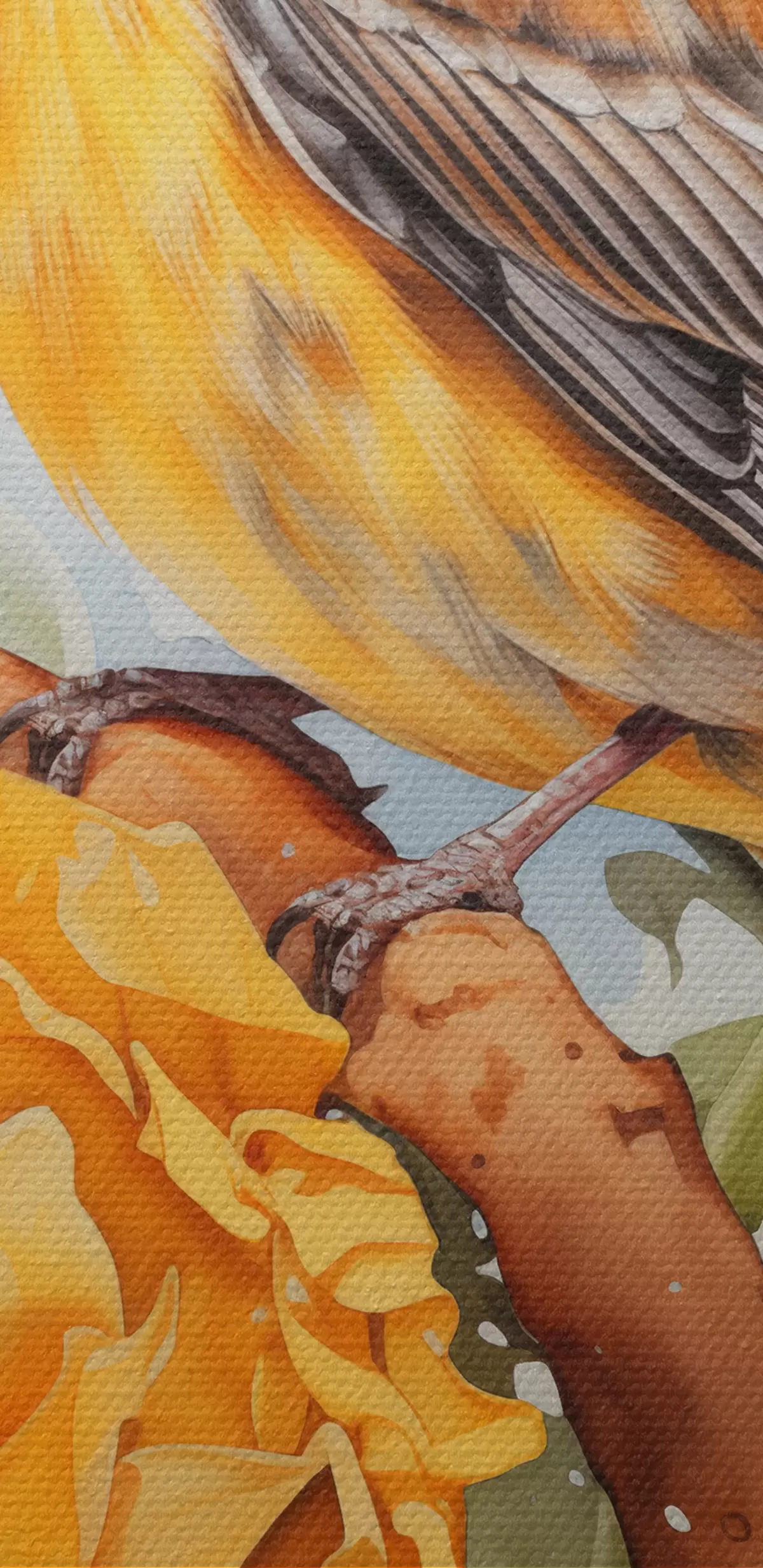 Картина Жовтий птах, що сидить на соняшнику, акварель s41015