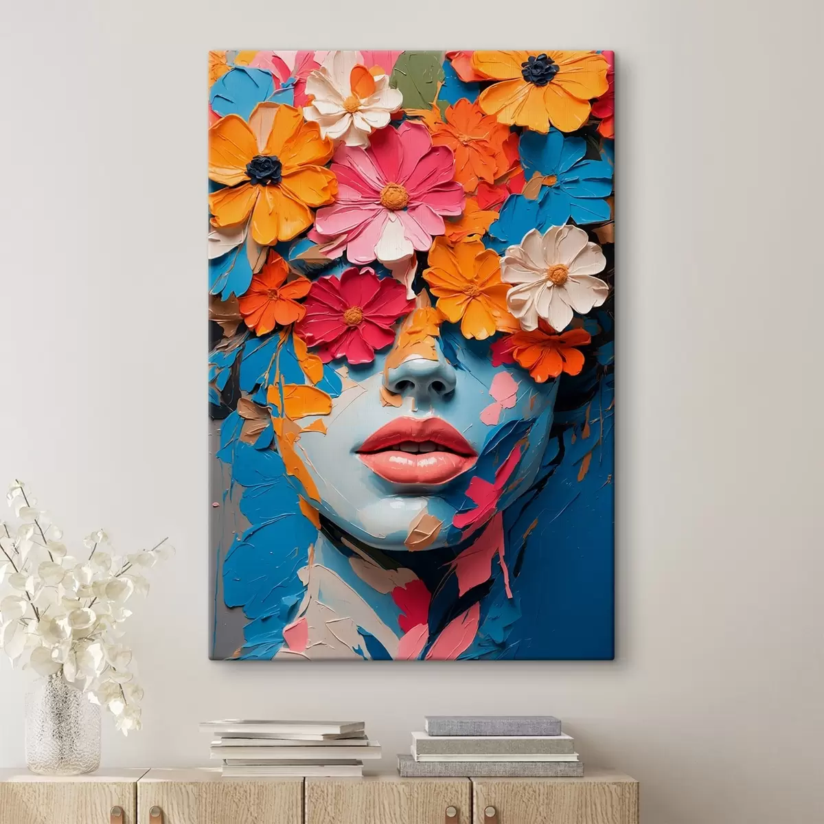 Картина Обличчя дівчини в олії, вкрите квітами Арт. s41023