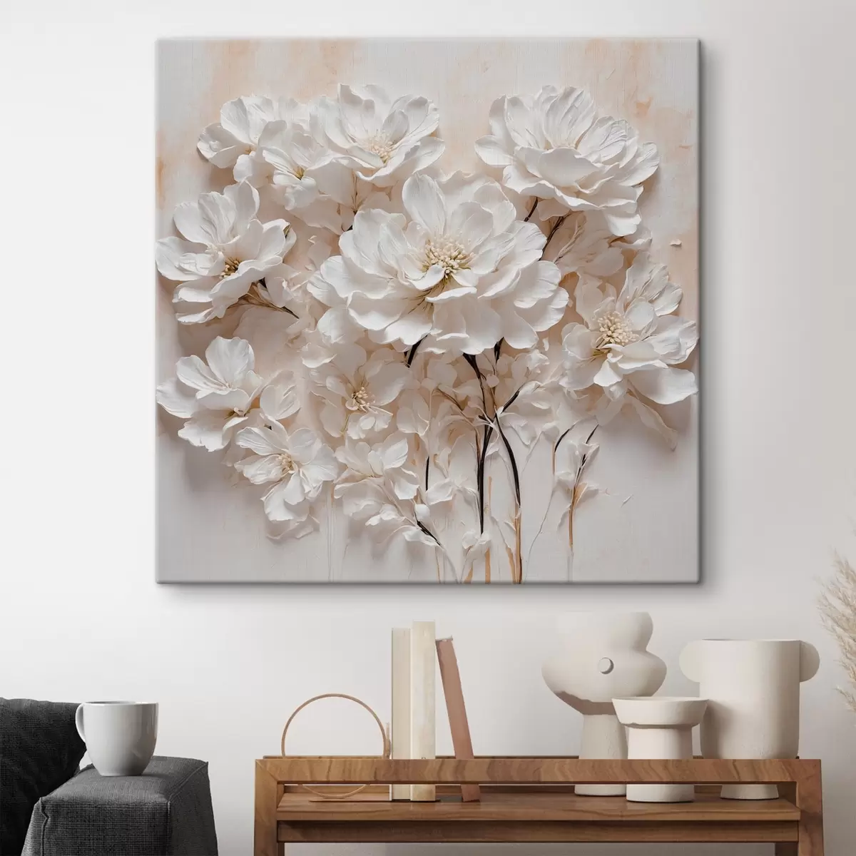Картина Білі квіти на біло-помаранчевому тлі Арт. s41042
