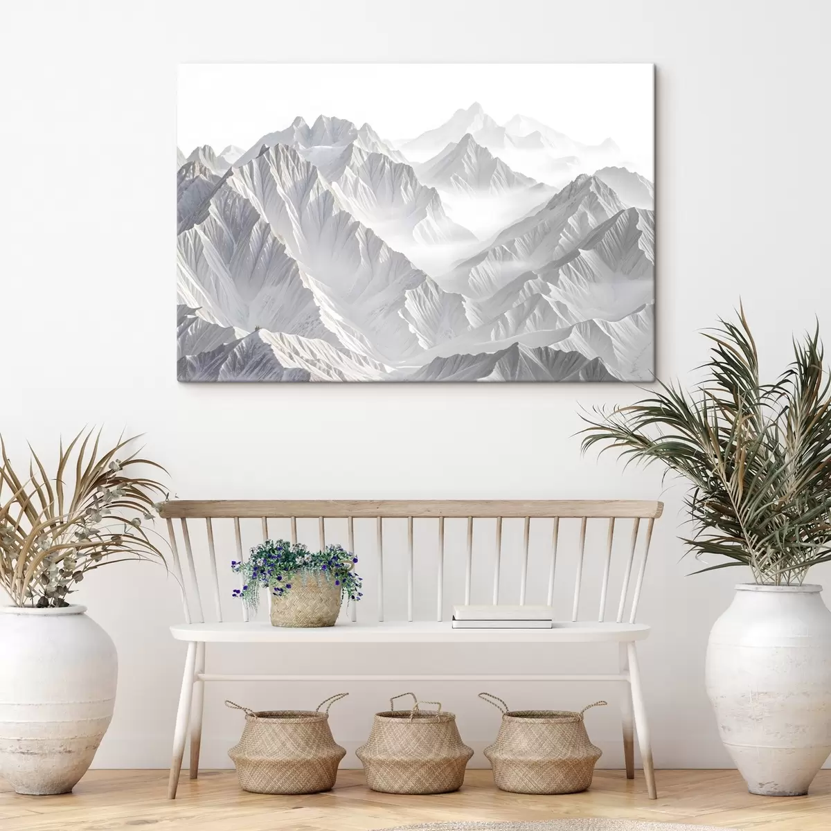 Картина Засніжені мінімалістичні гірські вершини в туманному, туманному пейзажі s41083
