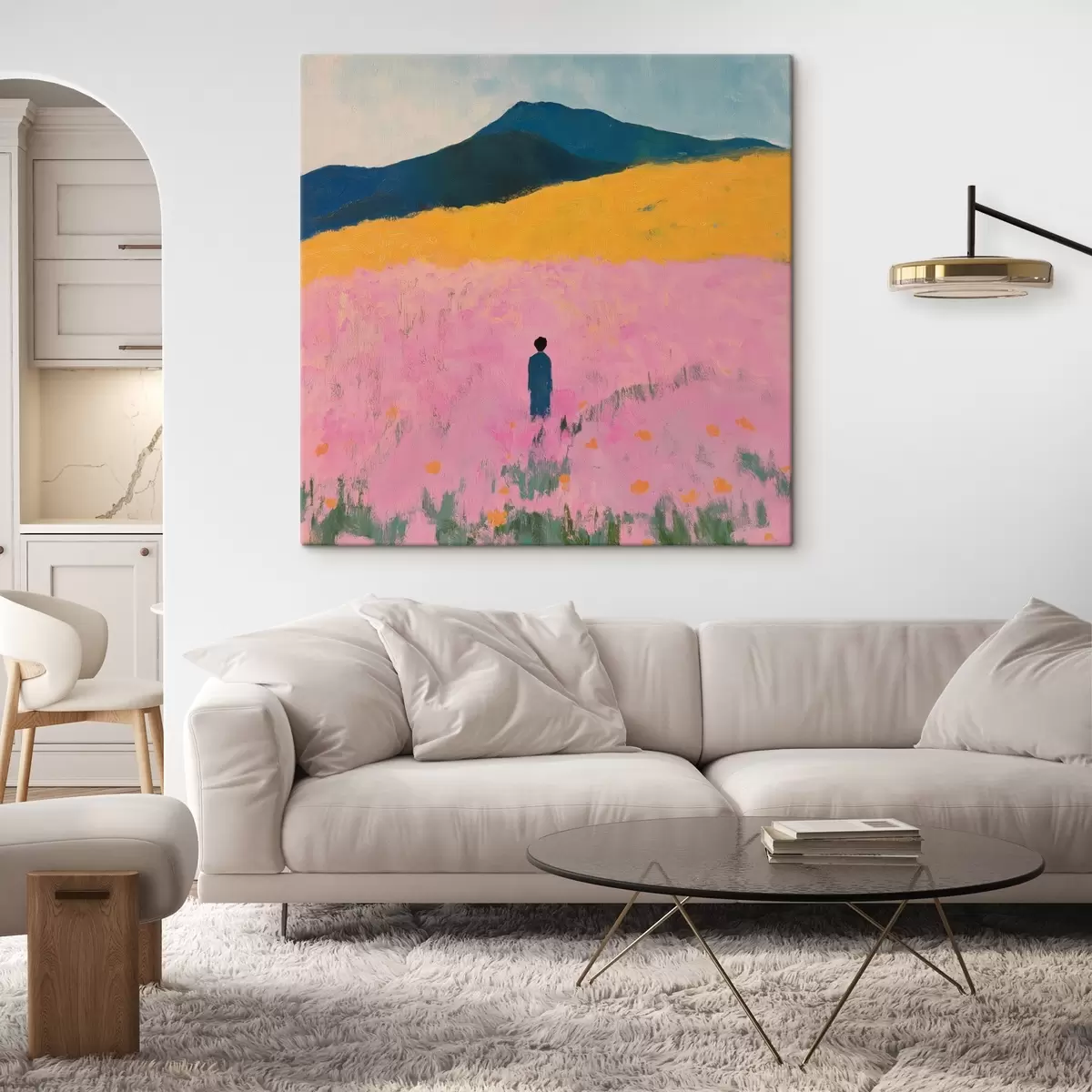 Картина Чоловік у полі з рожевими квітами Арт. s41164