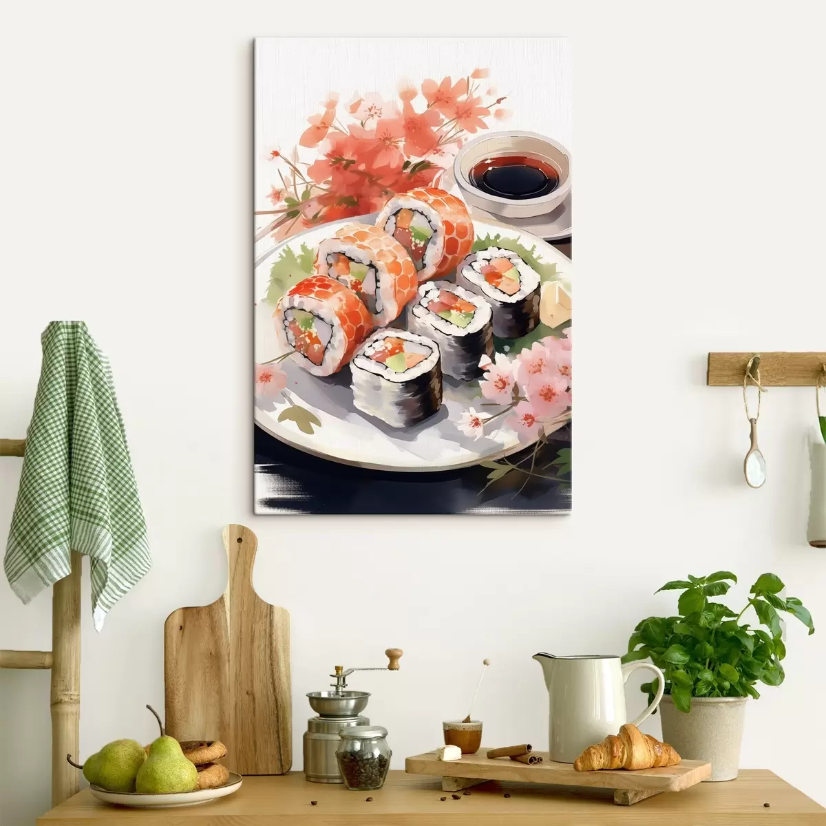 Картина Суші на тарілці, акварель, квітковий, японський Арт. s41179