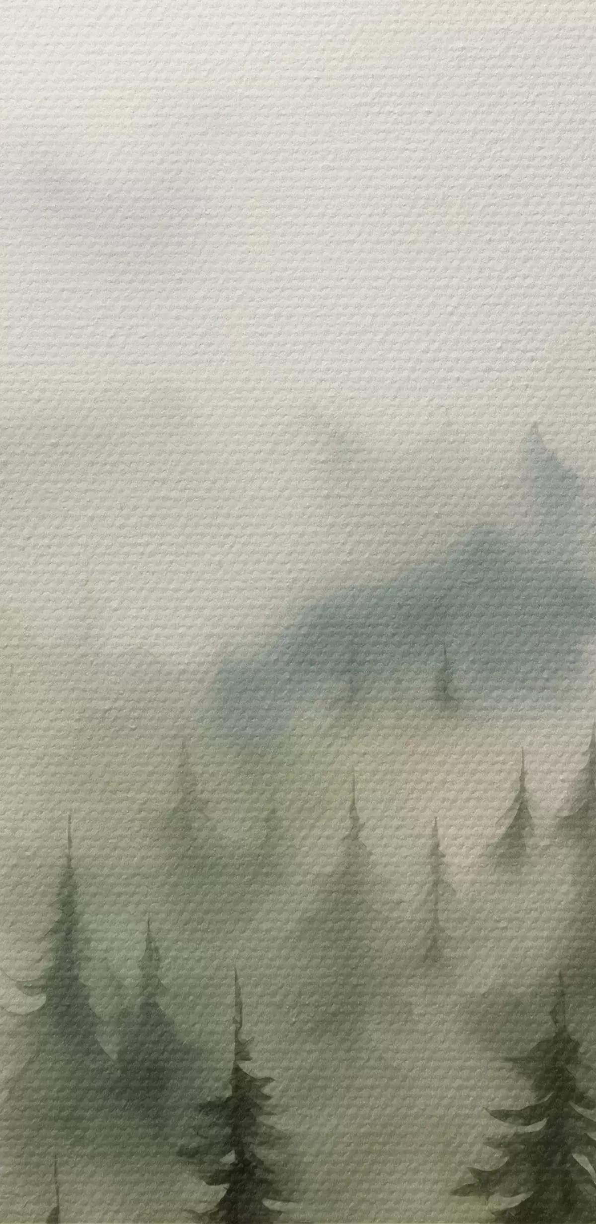Картина Зелений ліс на тлі гір та акварелі туману Арт. s41241