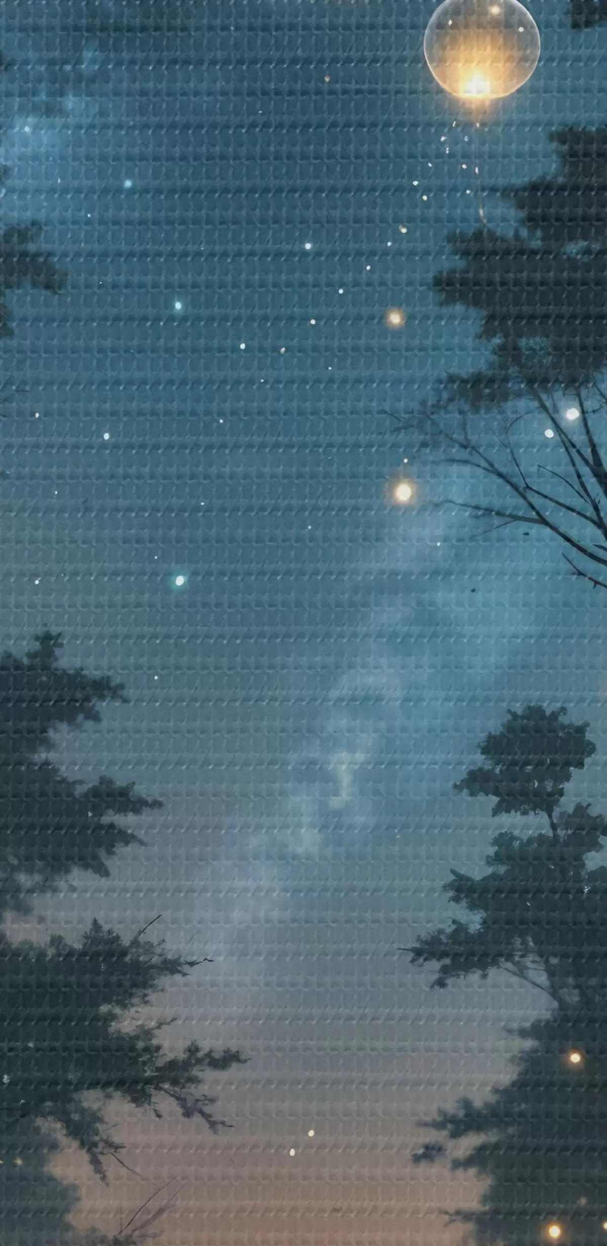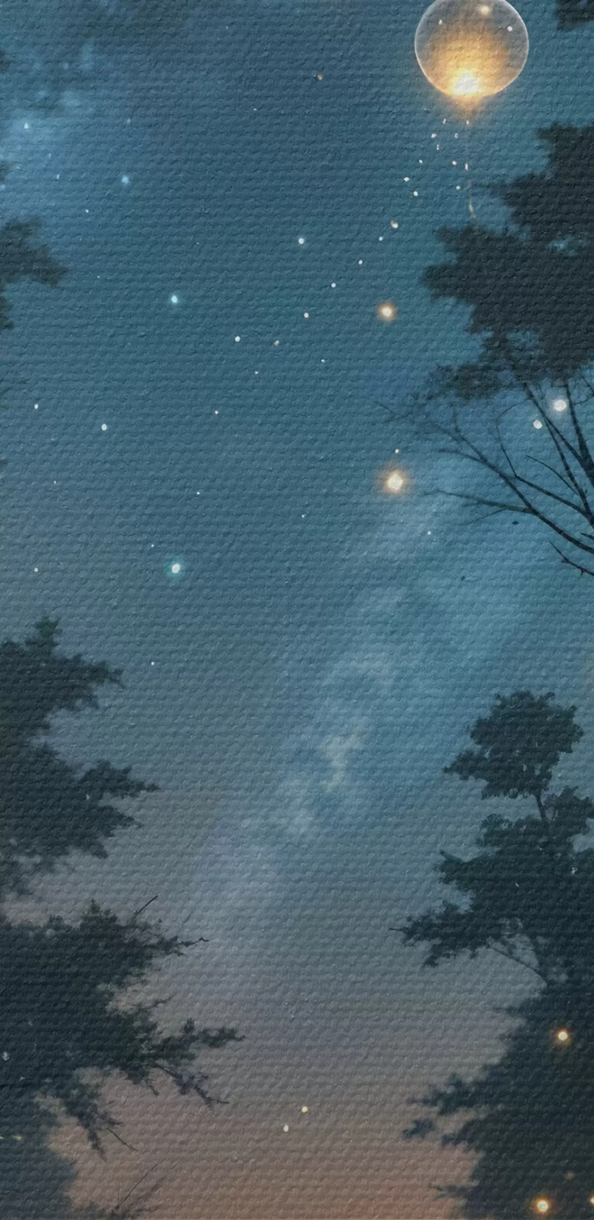 Картина Чарівний нічний ліс з жовтими кулями та світлячками, що літають між деревами, створюючи химерну атмосферу Арт. s41259