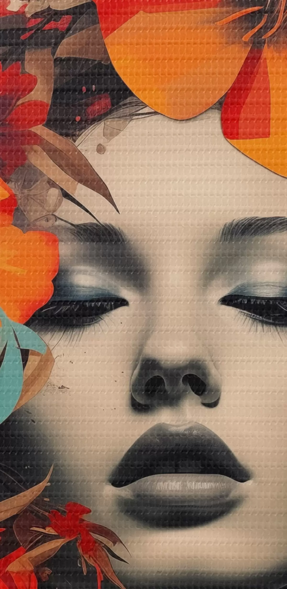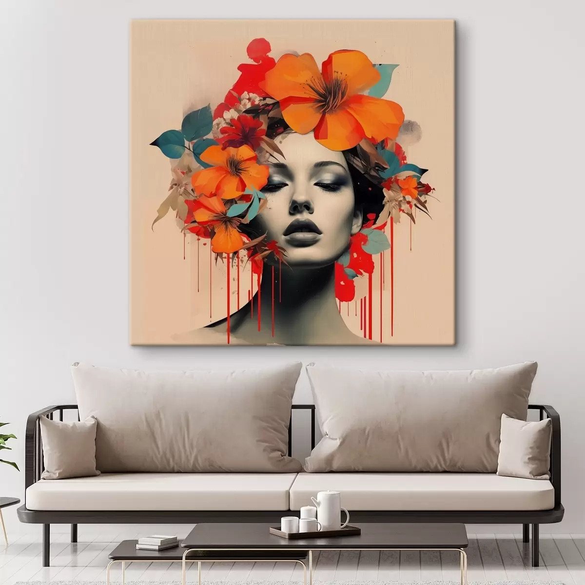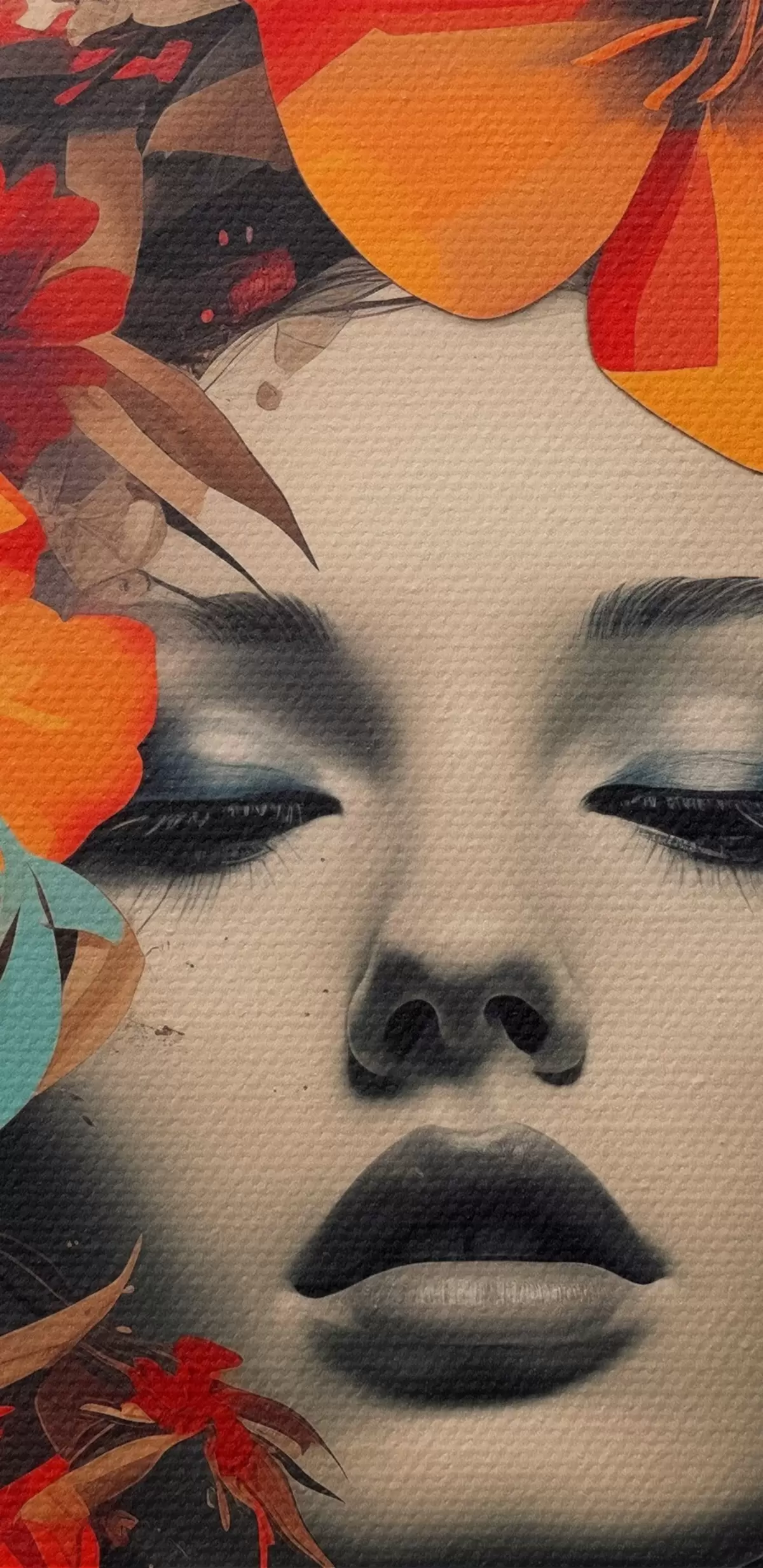 Картина Портрет дівчини в стилі колажу з квітами Арт. s41271