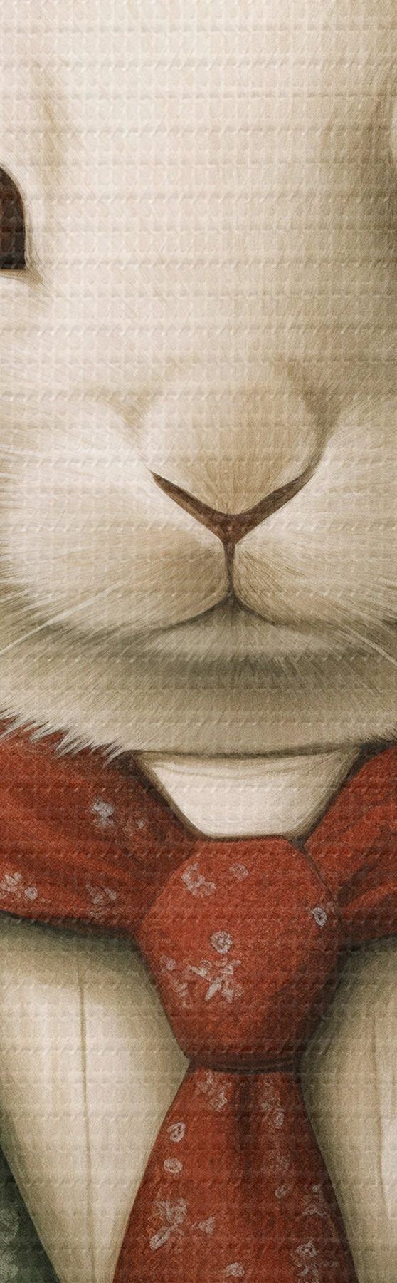 Картина Білий заєць у зеленому костюмі та червоній краватці ілюстрація s41278