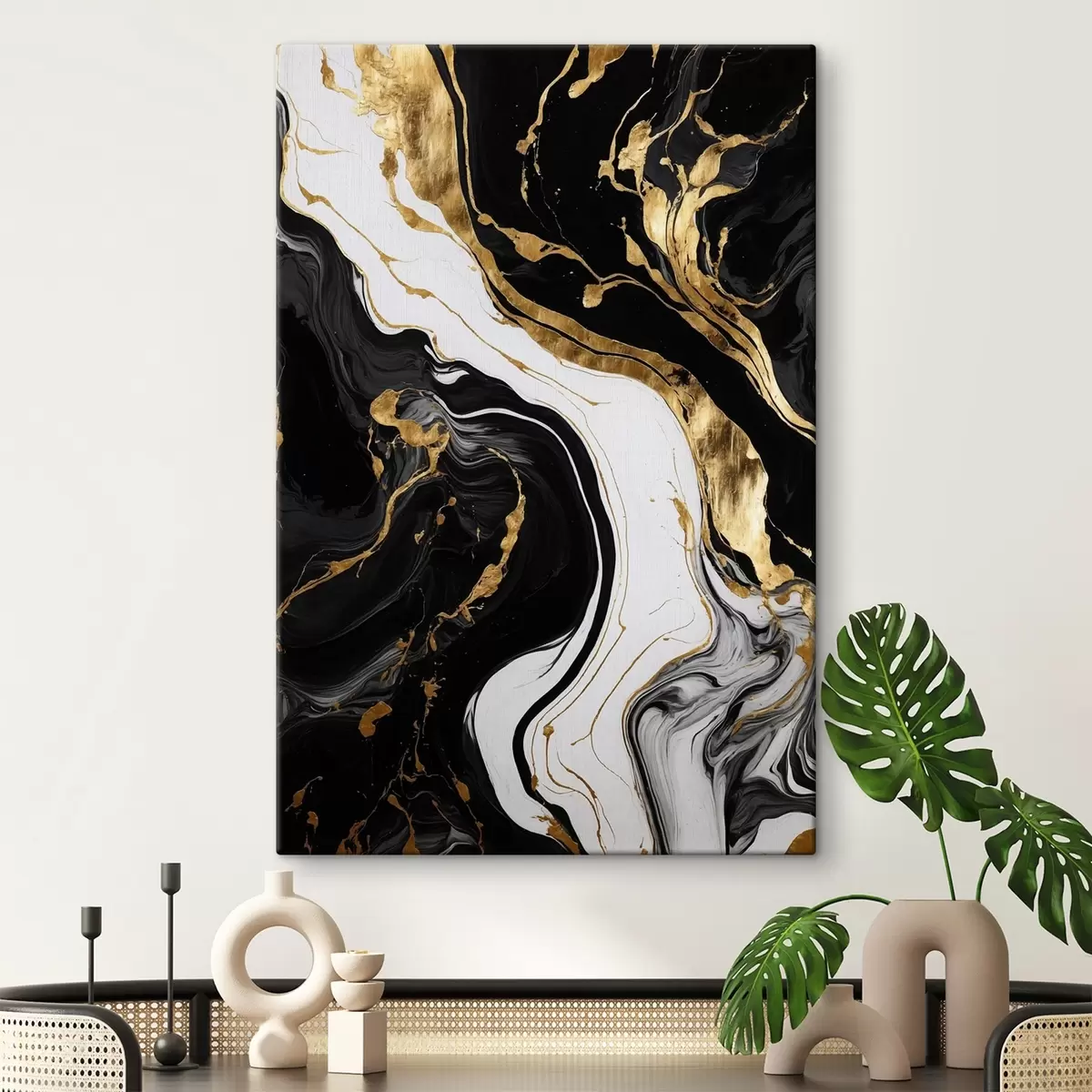 Картина Чорно-білий абстрактний живопис з жовтими плямами Арт. s41292