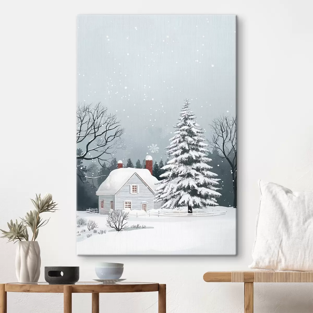 Картина Зимова сцена з будинком, засипаним снігом, лісом, соснами Арт. s41369