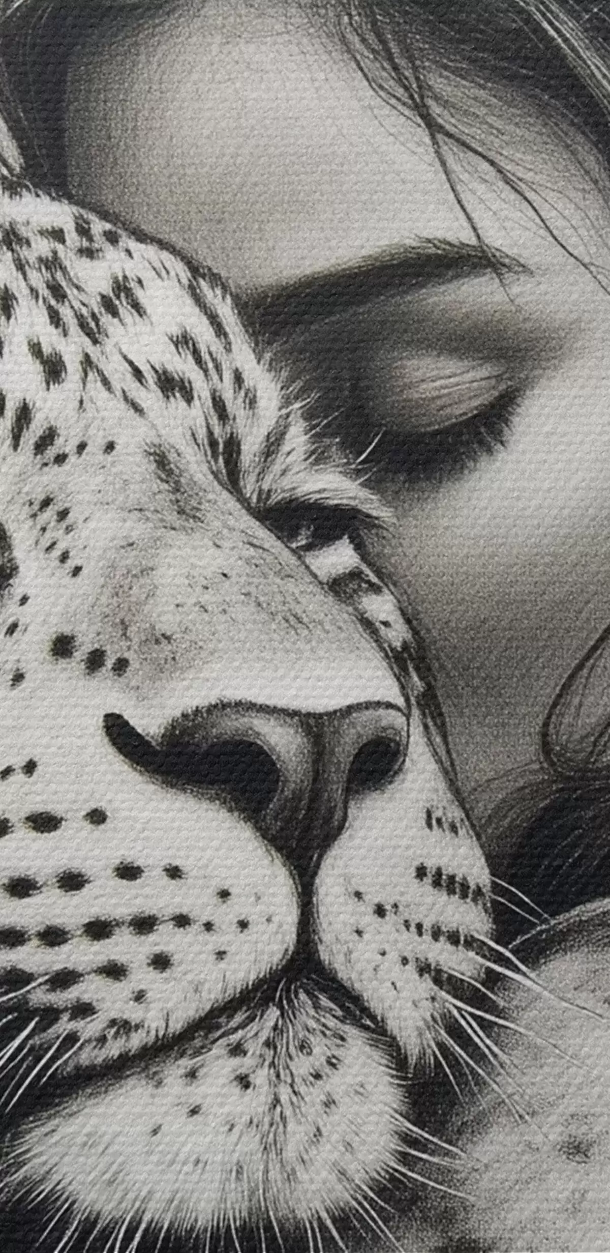 Картина Жінка з леопардом, дикі тварини, малюнок олівцем, чорно-білий Арт. s41455