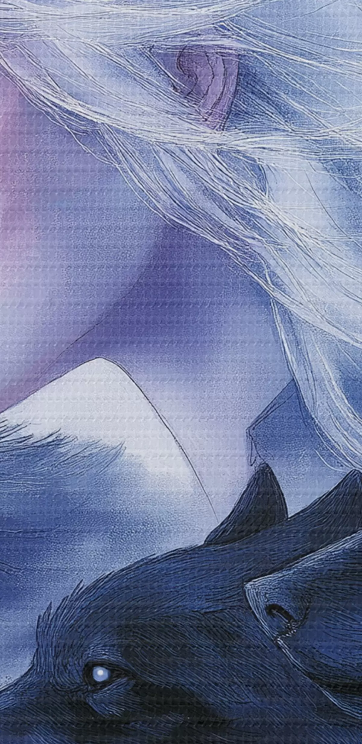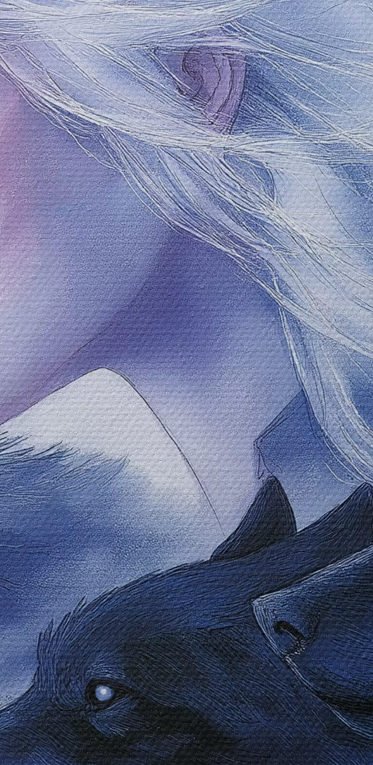 Картина Зима, жінка з вовками, туман, таємниче  s41460