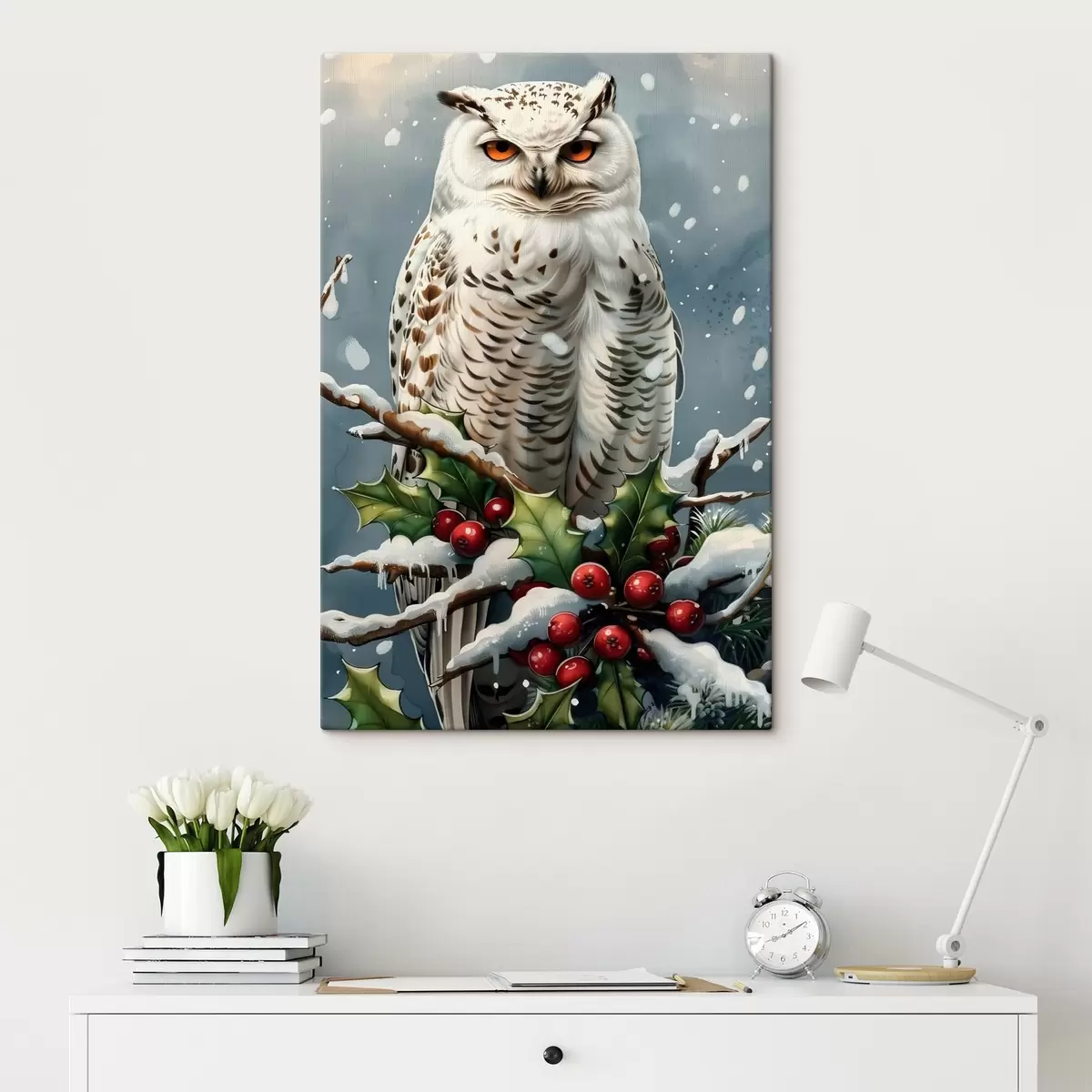 Картина Сова на зимовій гілці з ягодами та листям s41482