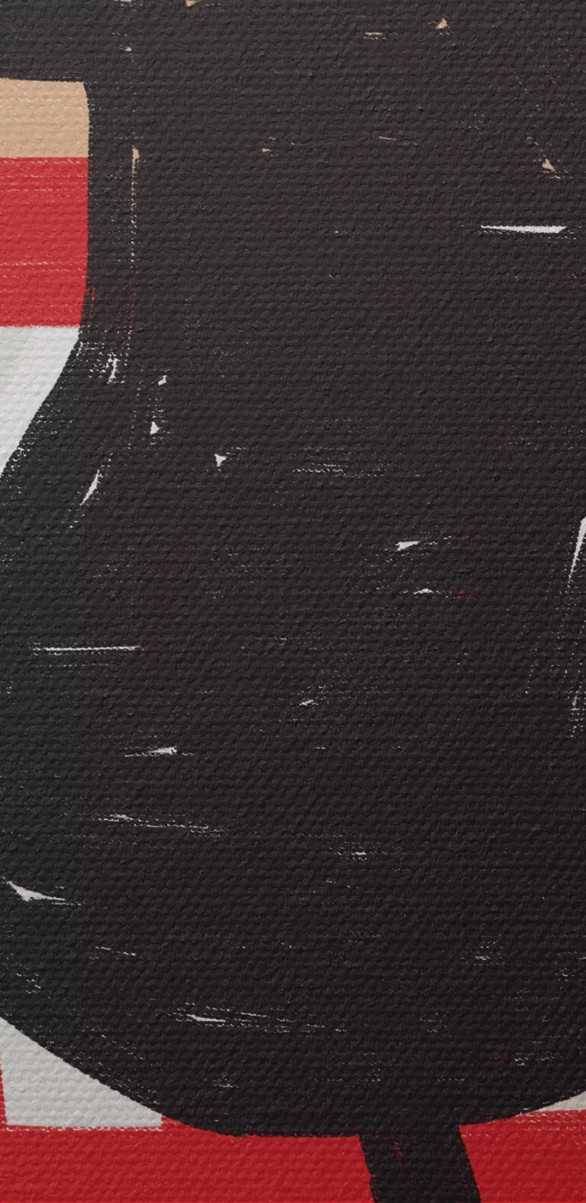 Картина Чорний кіт сидить на червоному стільці на бежевому тлі, грубі мазки, імітація живопису Арт. s41612