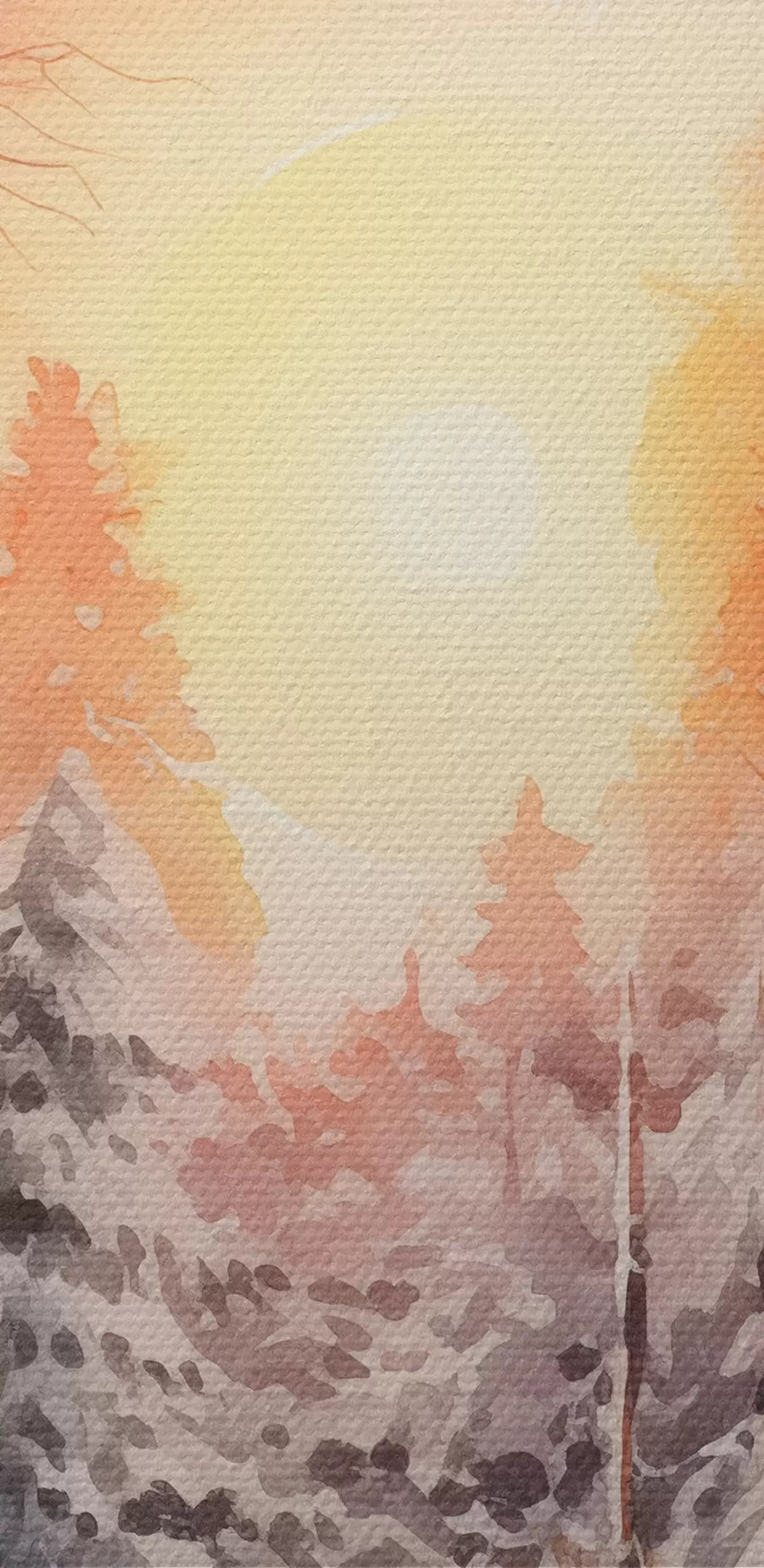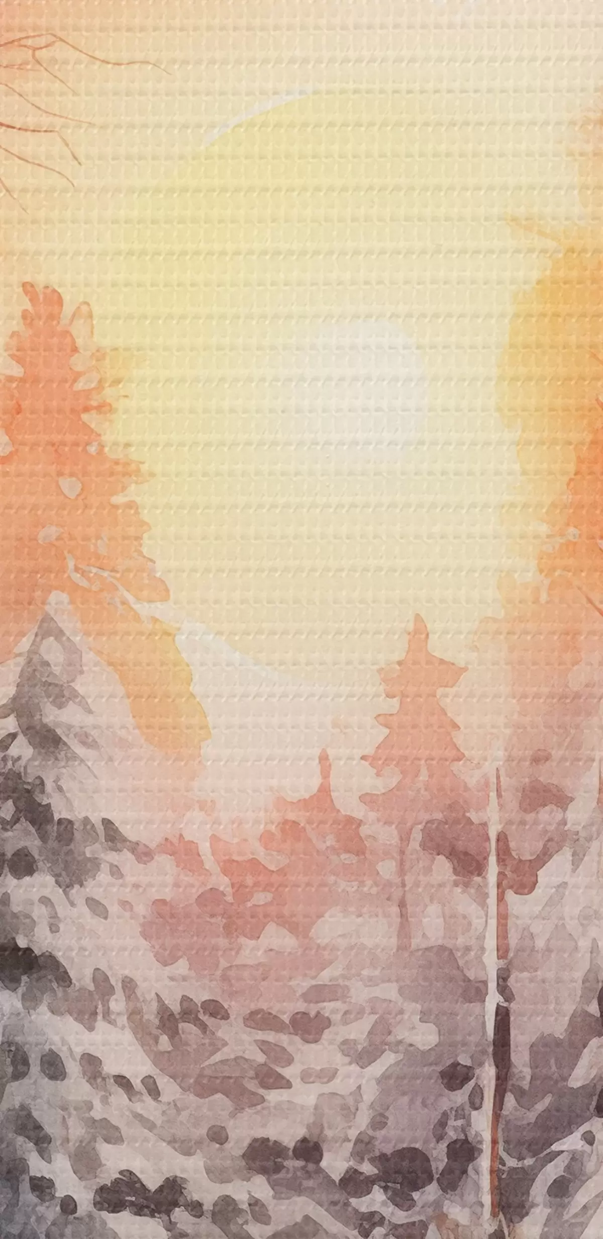 Картина Красива зима, акварельний ліс, сніг, дерева, рожеве небо, захід сонця s41641