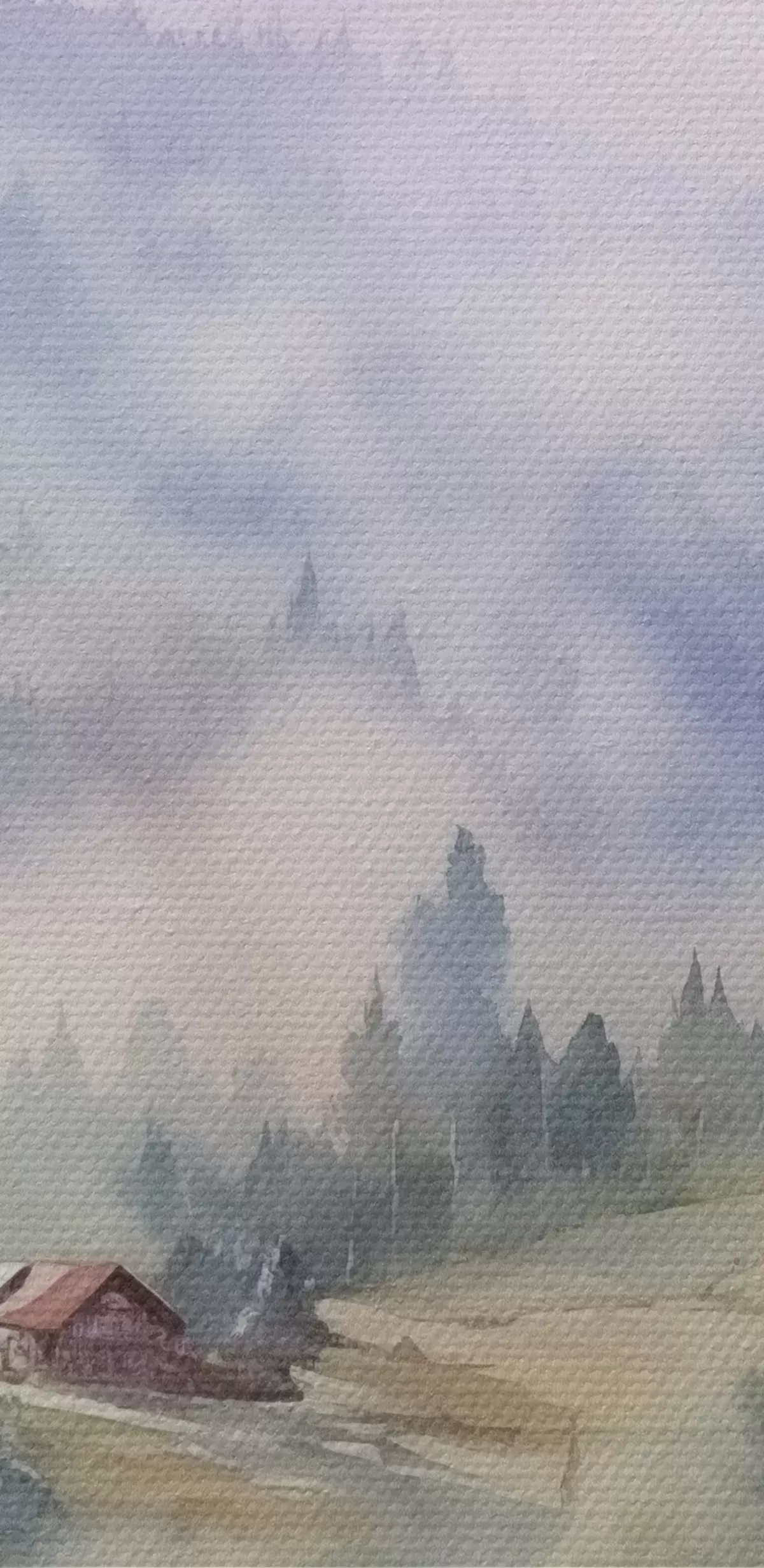 Картина Красиві гори, туманні лісові пейзажі, акварель, село Арт. s41649