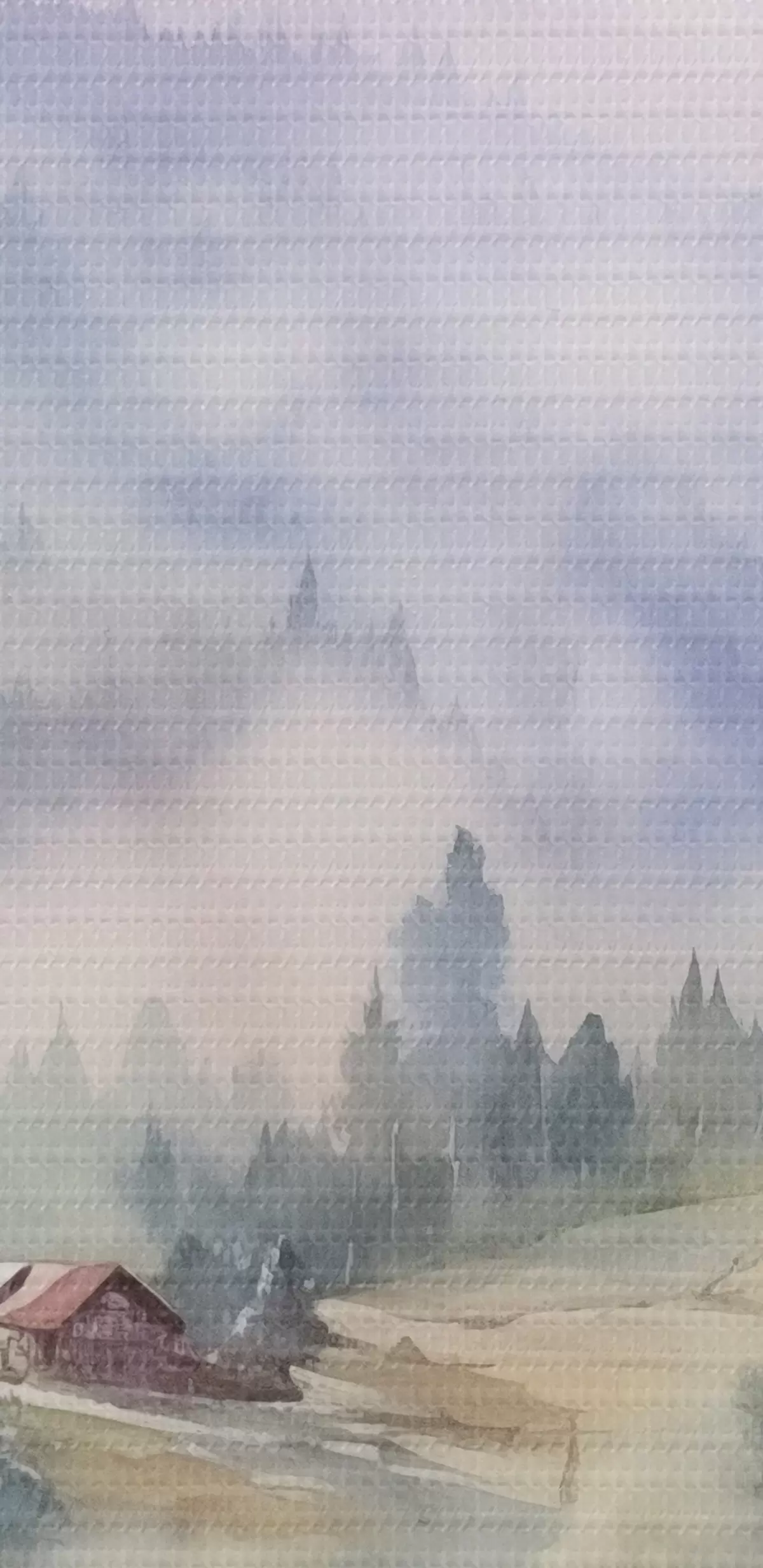 Картина Красиві гори, туманні лісові пейзажі, акварель, село s41649