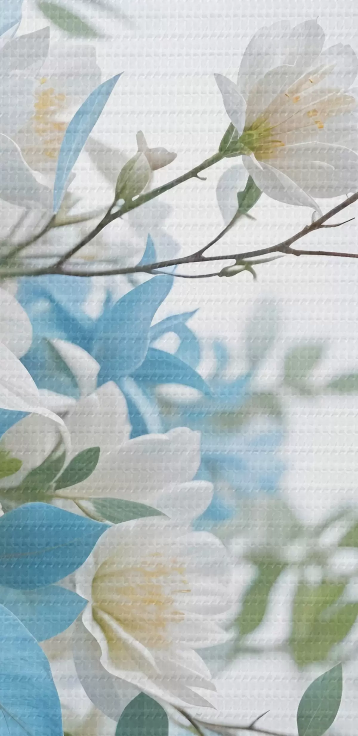 Картина Букет біло-блакитних квітів із зеленим листям на м'якому, розмитому тлі Арт. s41715