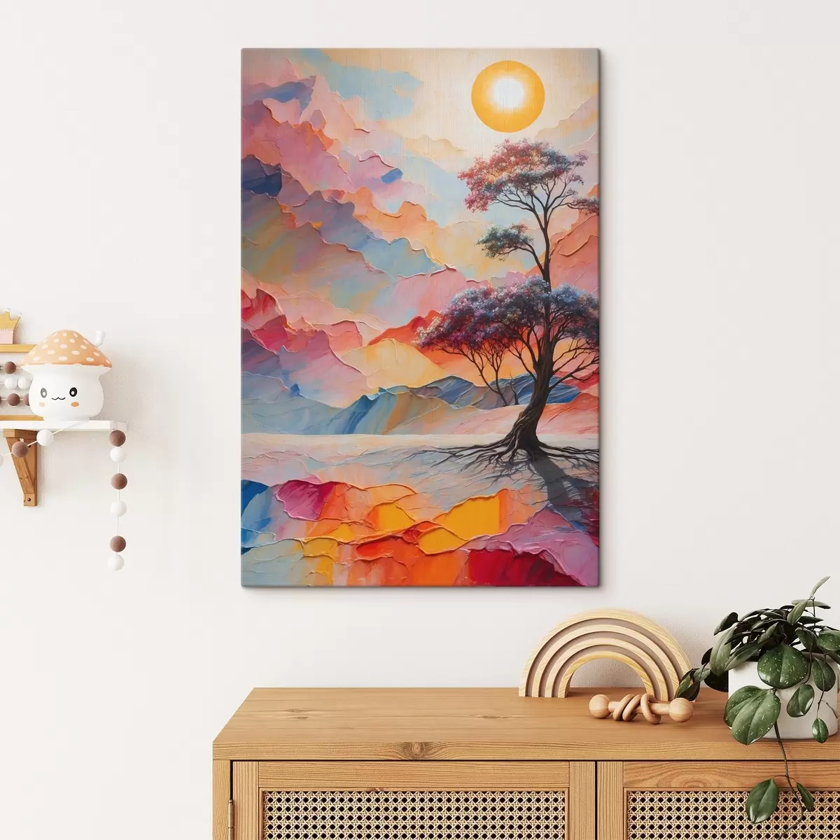 Картина Дерево і сонце на абстрактному тлі в акриловому стилі s41771
