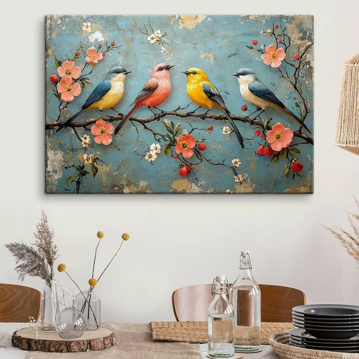 Картина Птахи на гілці сакури в стилі олійного живопису s41834