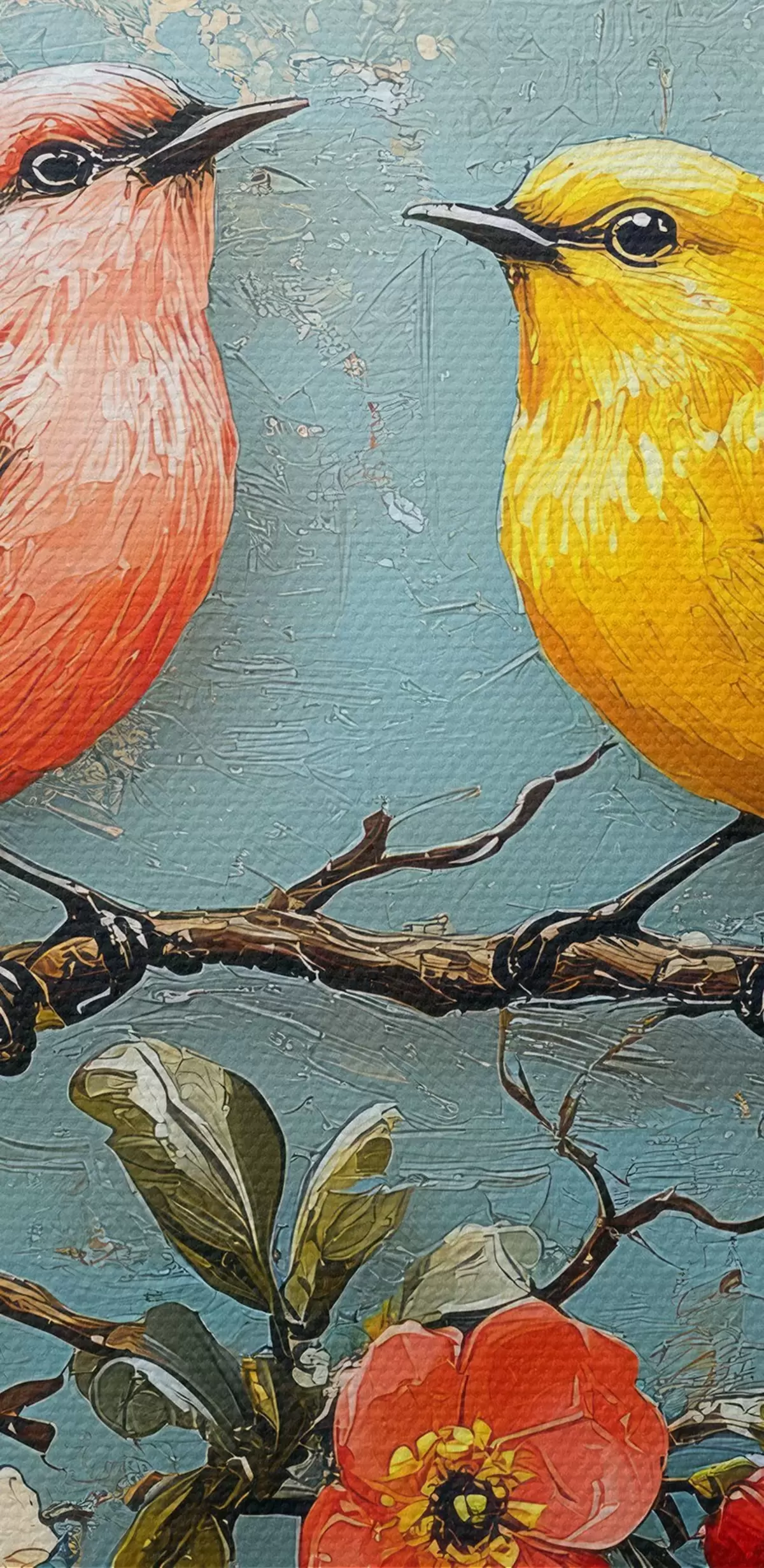 Картина Птахи на гілці сакури в стилі олійного живопису Арт. s41834