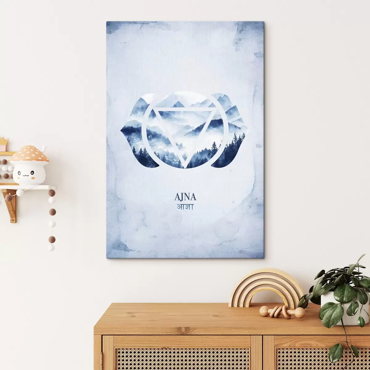 Картина Аджна-чакра, чакра третього ока, езотерика, медитація, буддизм, гори в стилі акварелі s41885