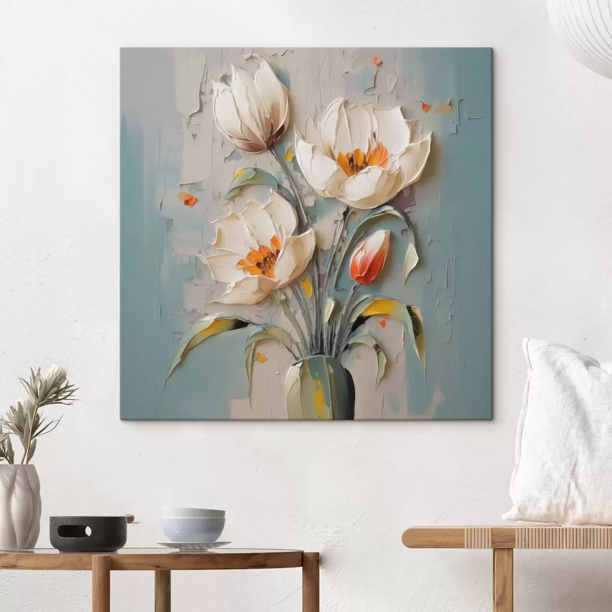 Картина Білі тюльпани у вазі з імітацією картини s41933