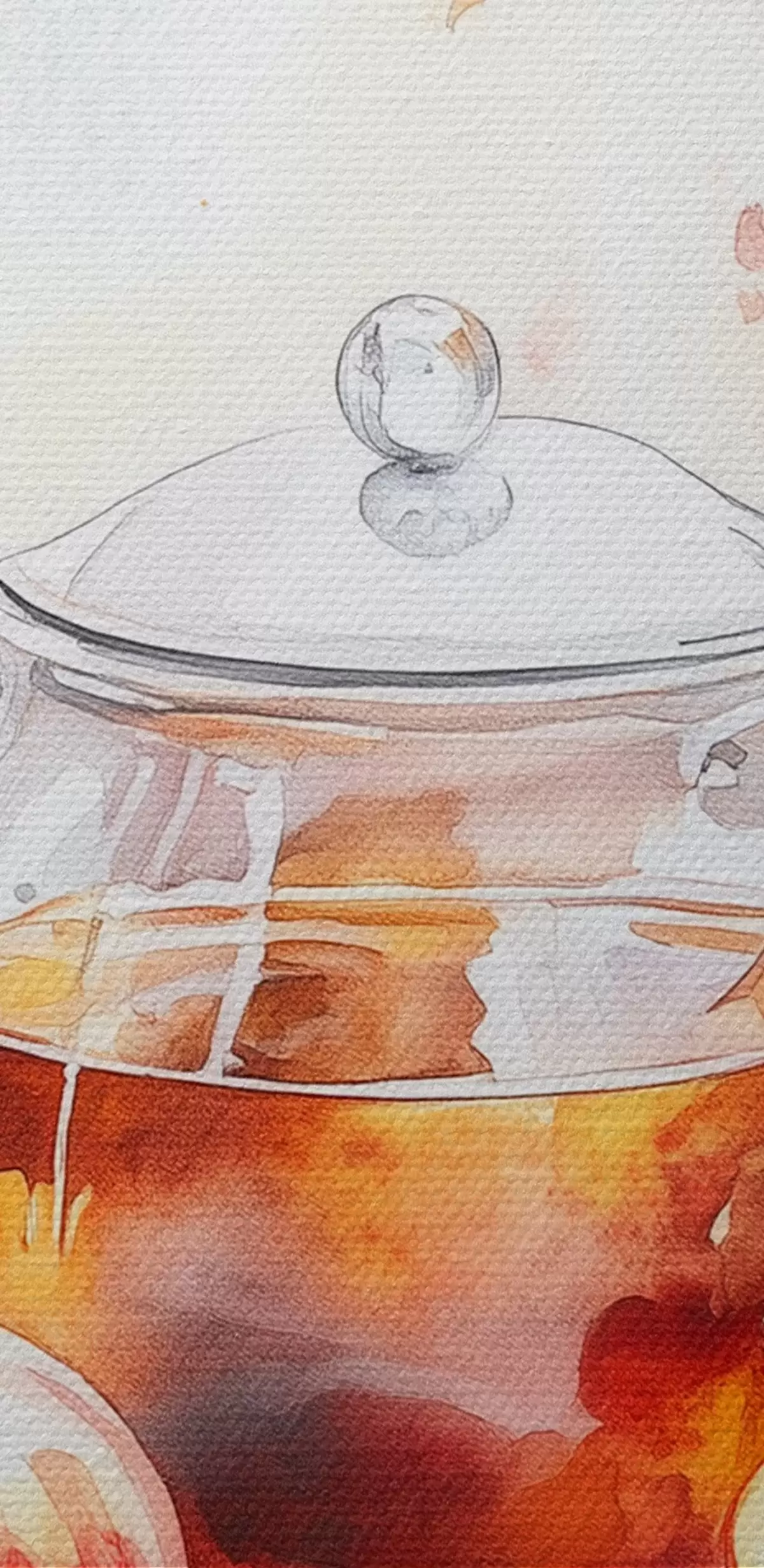 Картина Акварельний чайник з глінтвейном, яблуко, кориця, осінні кольори Арт. s41943
