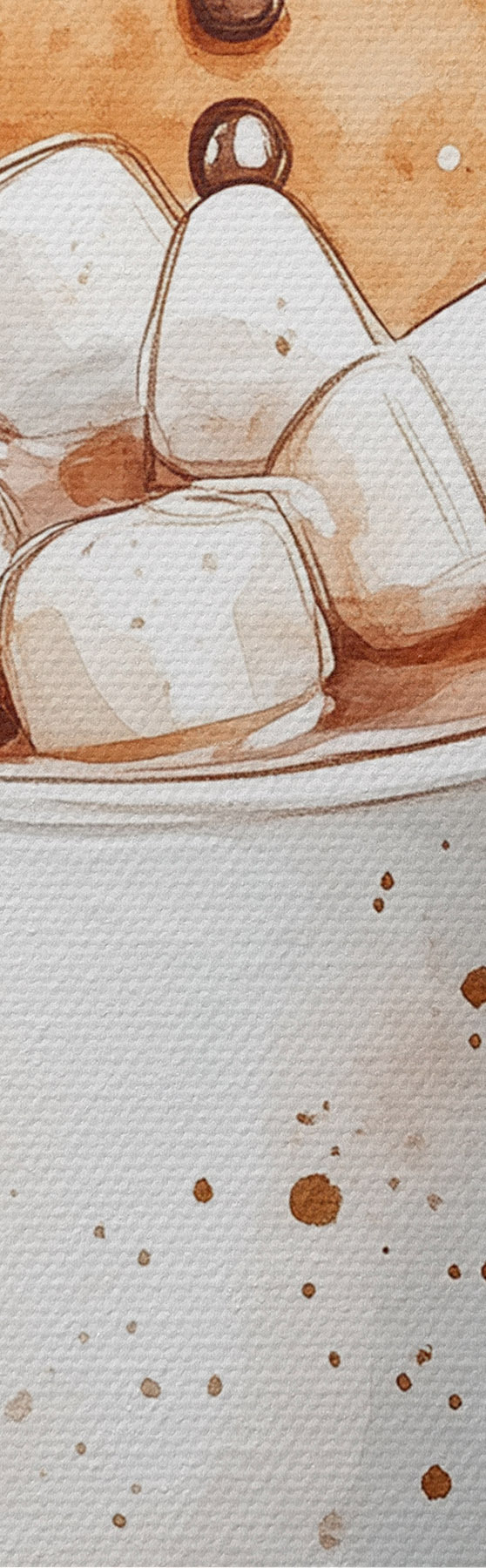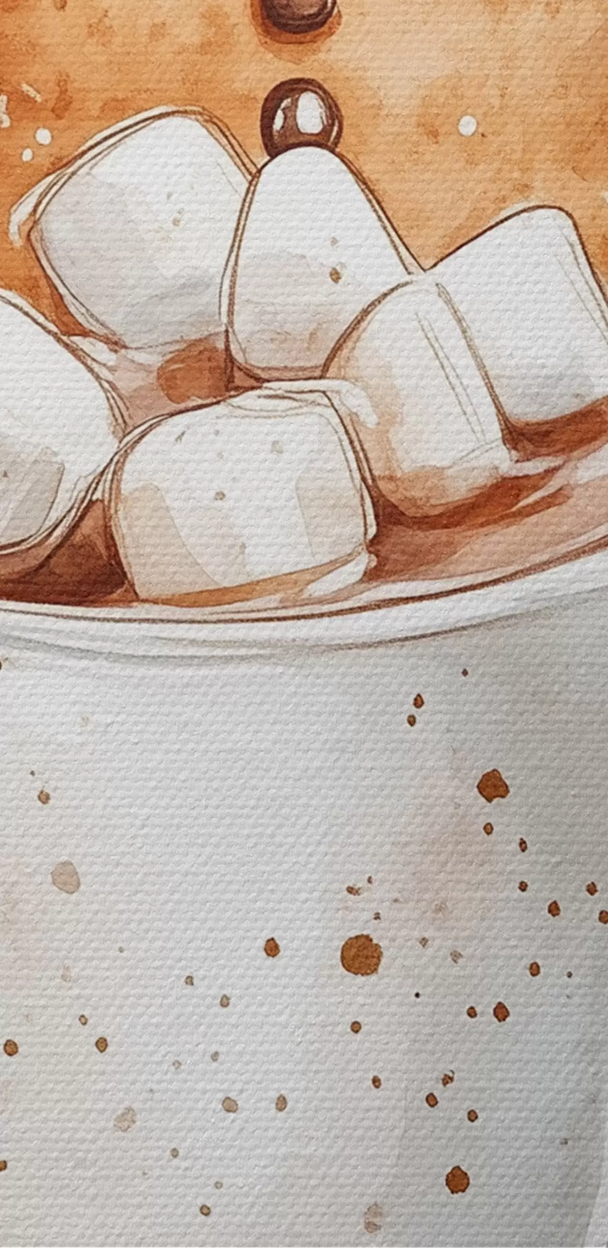 Картина Пряники в чашці кави, кориця, зефір, акварельний стиль, бежевий Арт. s41948