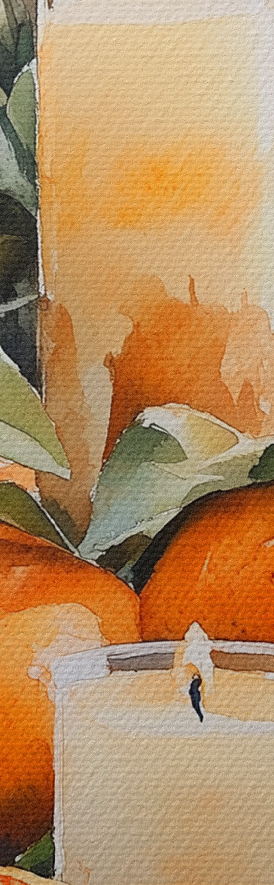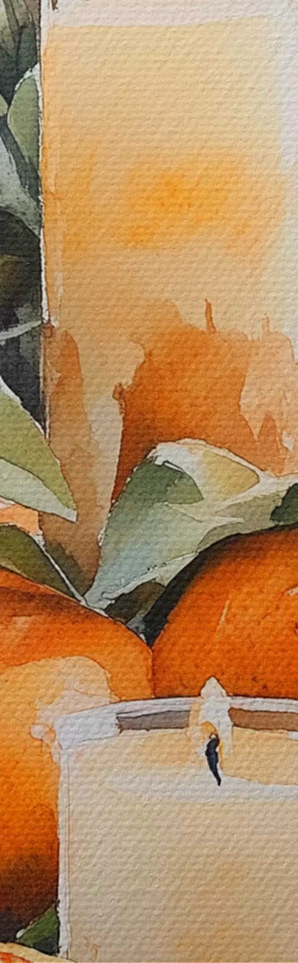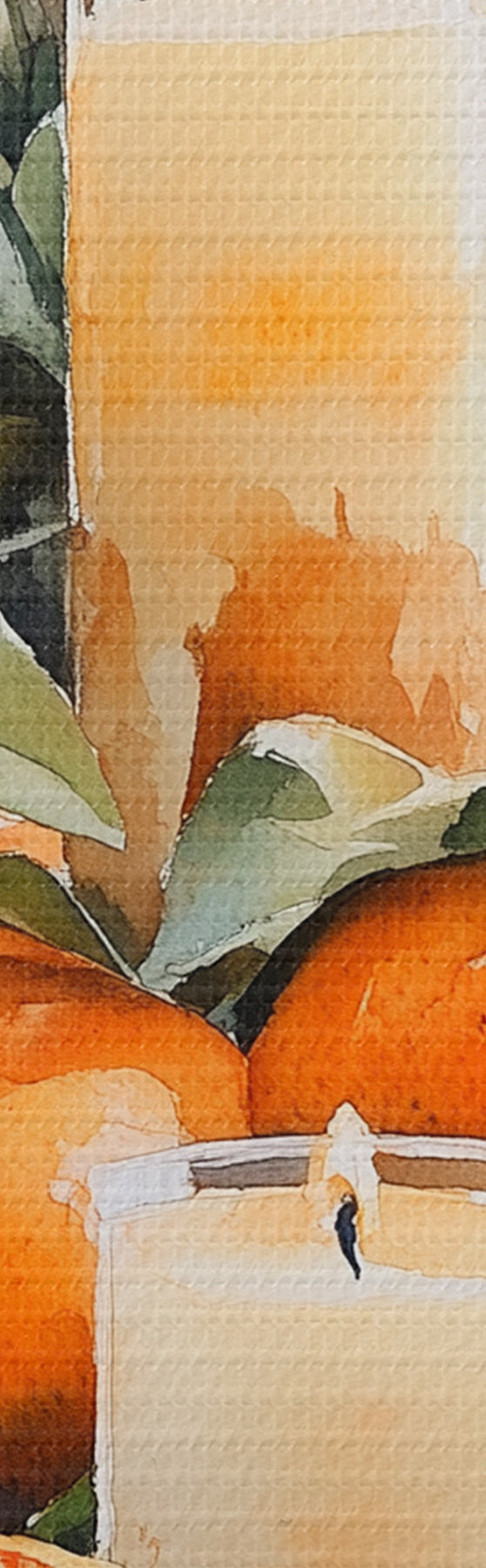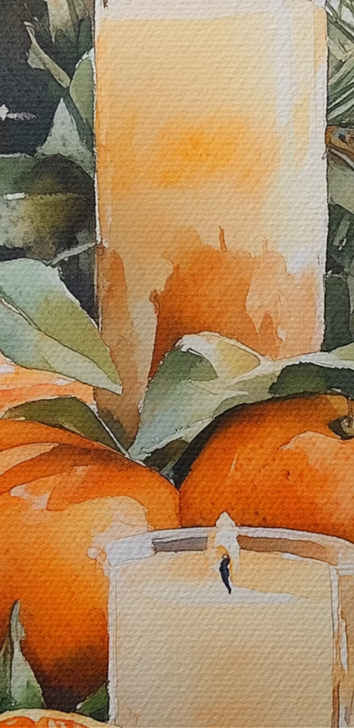 Картина Гілки сосни з шишками, апельсинами та свічками, святковий, акварельний стиль Арт. s41956