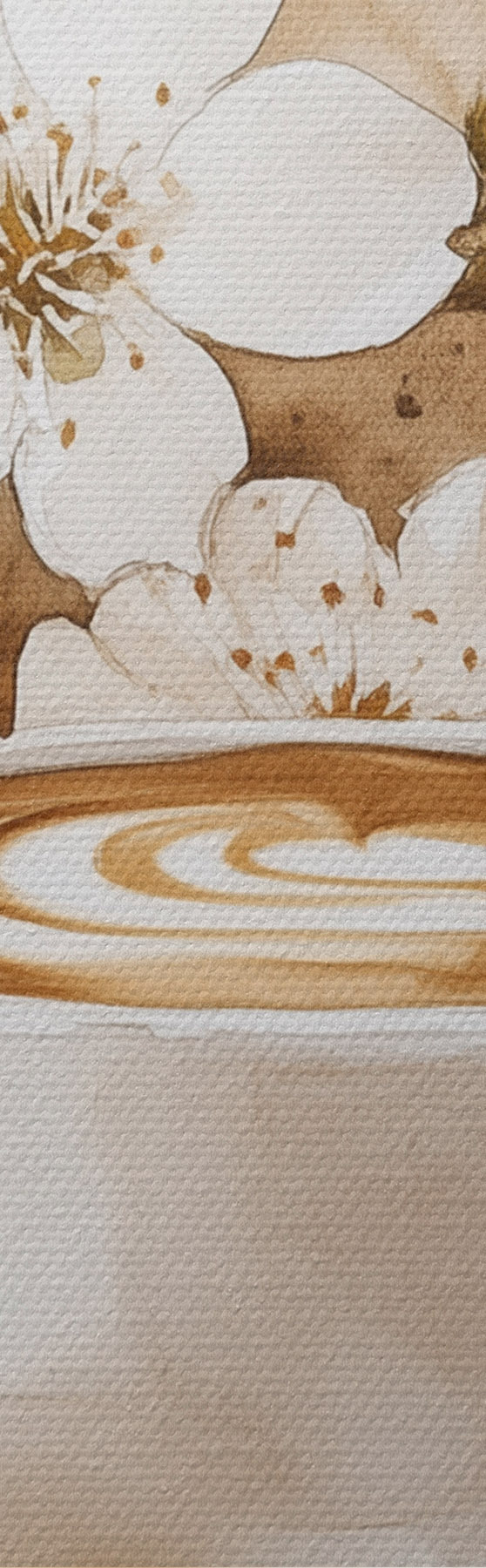 Картина Макаруни, чашка кави, акварельний стиль, бежеві кольори, квіти жасмину Арт. s41965