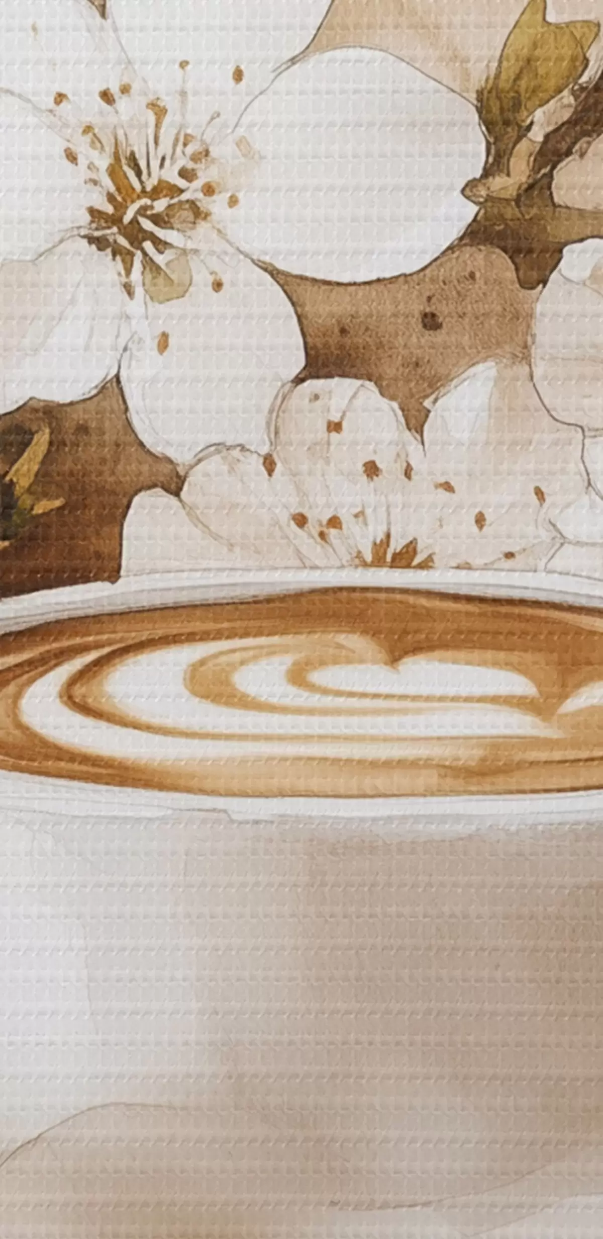 Картина Макаруни, чашка кави, акварельний стиль, бежеві кольори, квіти жасмину Арт. s41965